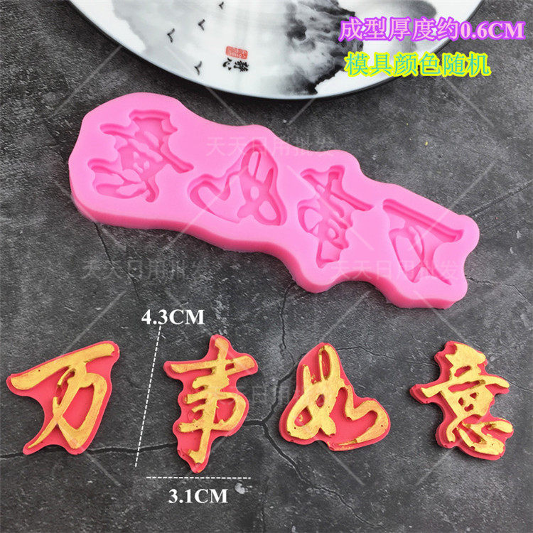 📚 中式祝福语祝贺词金玉满堂万事如意大吉大利硅胶模具装饰翻糖模具