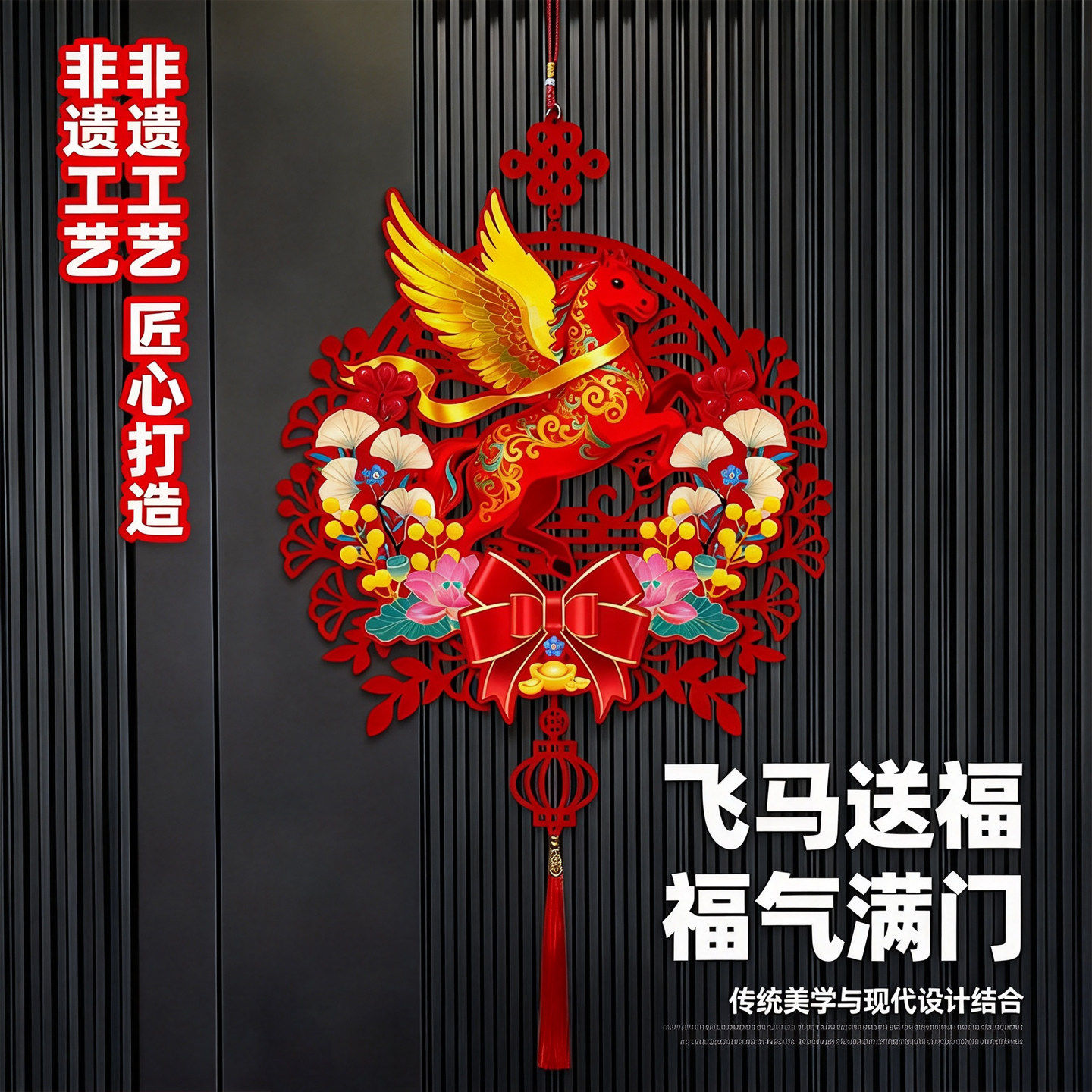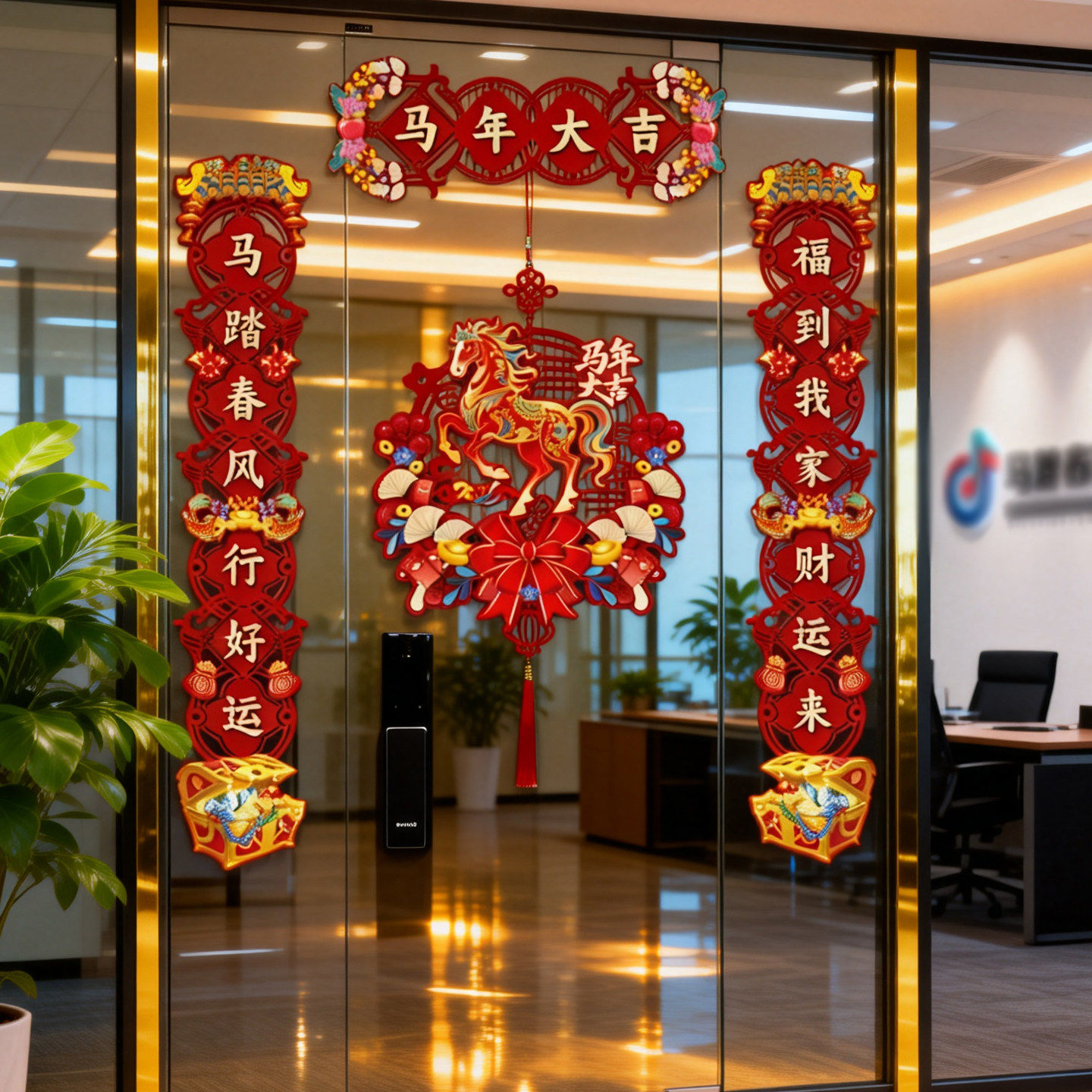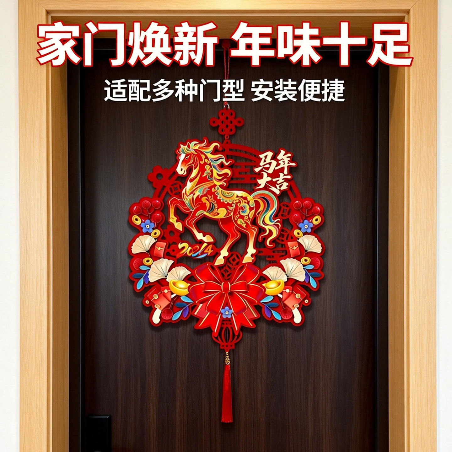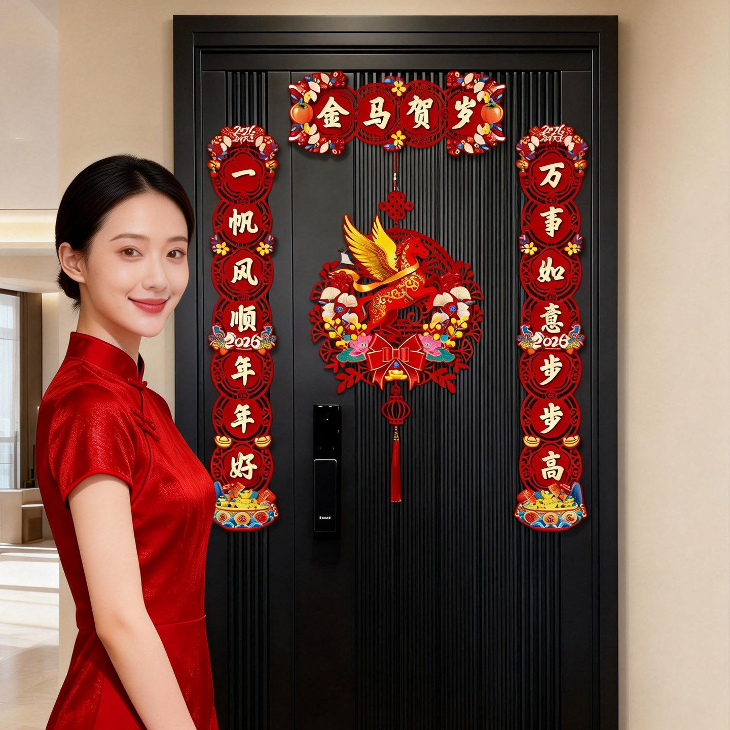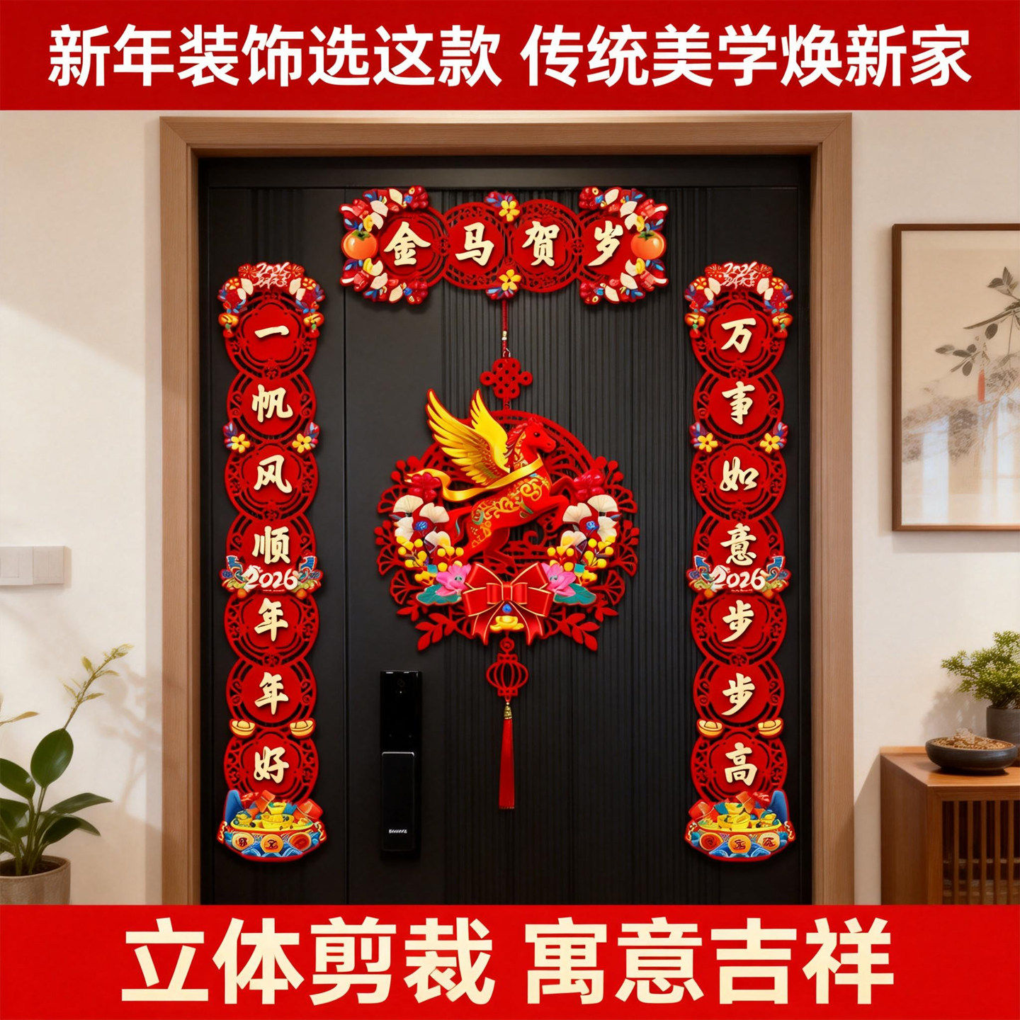 📚 马年全磁吸对联新年春联家用春节过年福字门贴元旦布置植绒装饰品