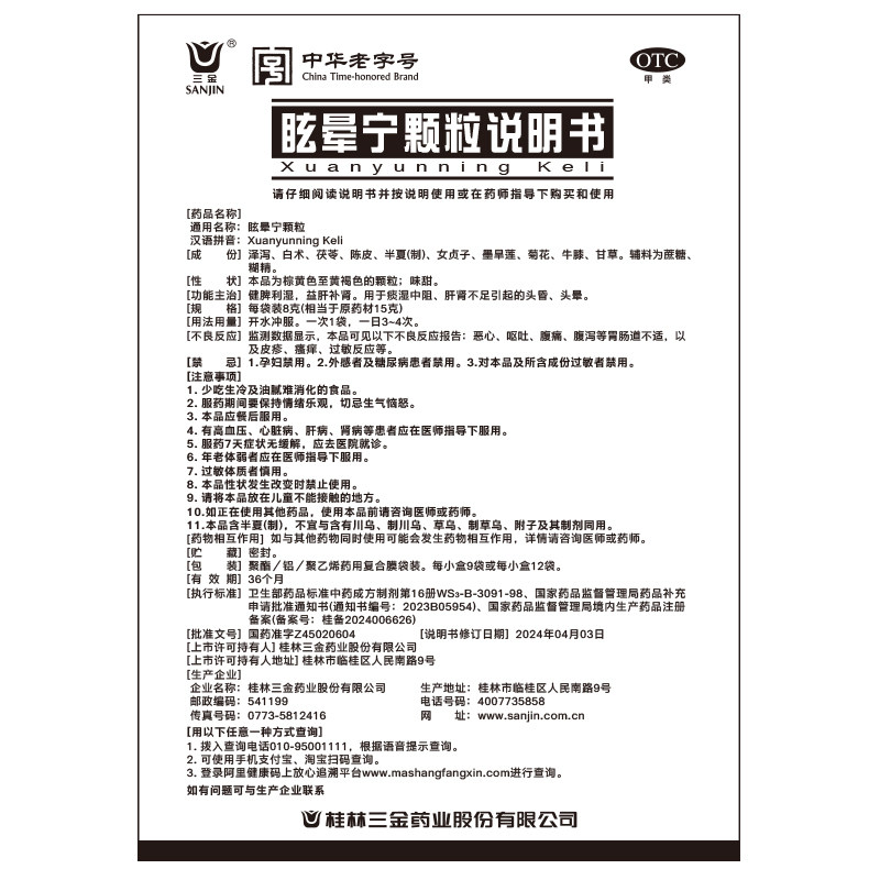 📚 桂林三金眩晕宁颗粒健脾利湿滋肾中阻肝肾晕车晕船治疗头昏头晕药