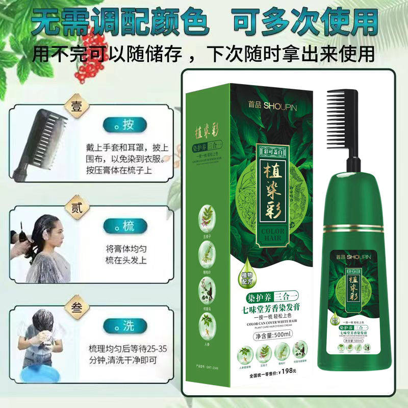 📚 首品孕妇可用一梳彩染发剂天然植物自己在家染发膏一梳黑遮盖白发