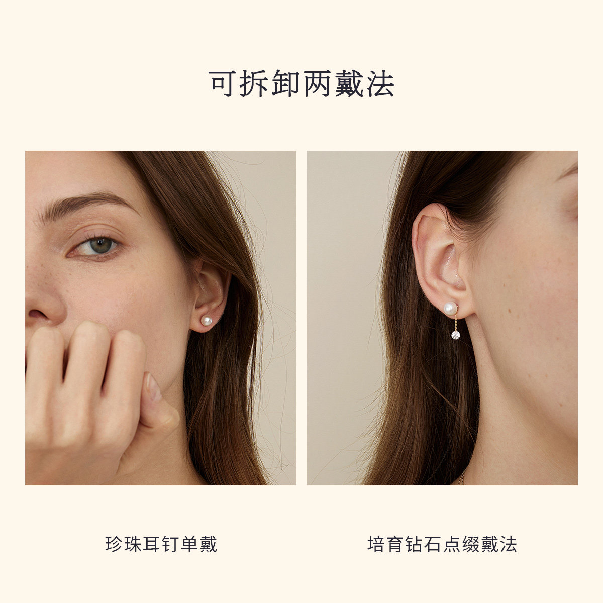 📚 HELAS赫拉流动系列淡水珍珠耳坠女14K金耳钉女培育钻石耳环耳饰
