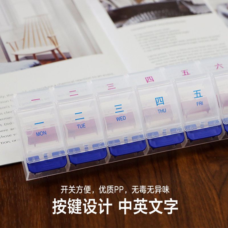 🌈亲们,今天来分享一款超级实用的随身药品分装盒——一周星期7天按键老年人药物药片分装随身便携大容量大号每日药盒!💎