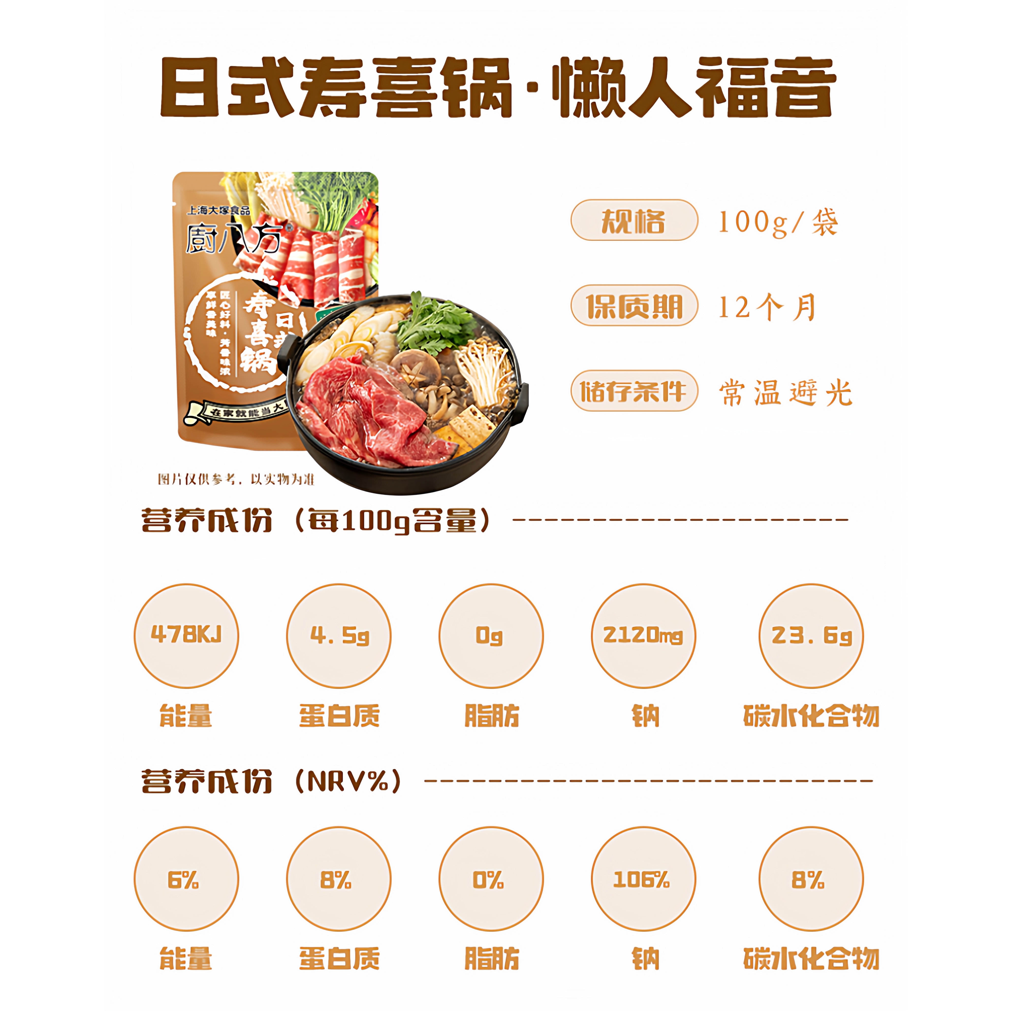 68¥ CA381 5vEKUuBZ2EP¥ https://m.tb.cn/h.i2yshqm 大塚现货厨八方日式寿喜锅寿喜烧火锅底料调料锅底厨房调味料100G --------------------- 【原售价】51元 【现售价】18元。