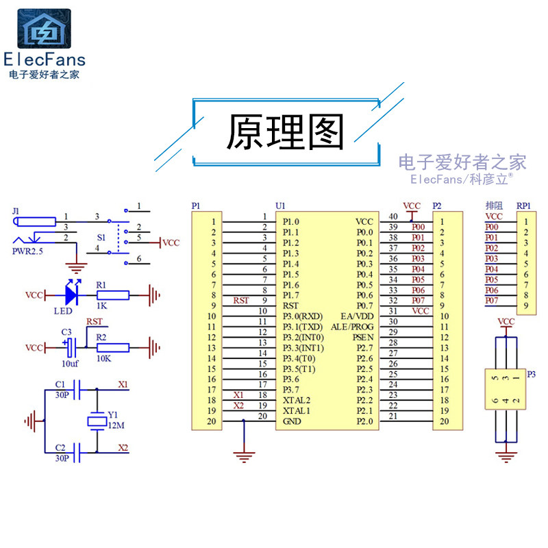📚 (散件)51单片机最小系统板套件STC89C52/AT89S52 电子爱好者之家