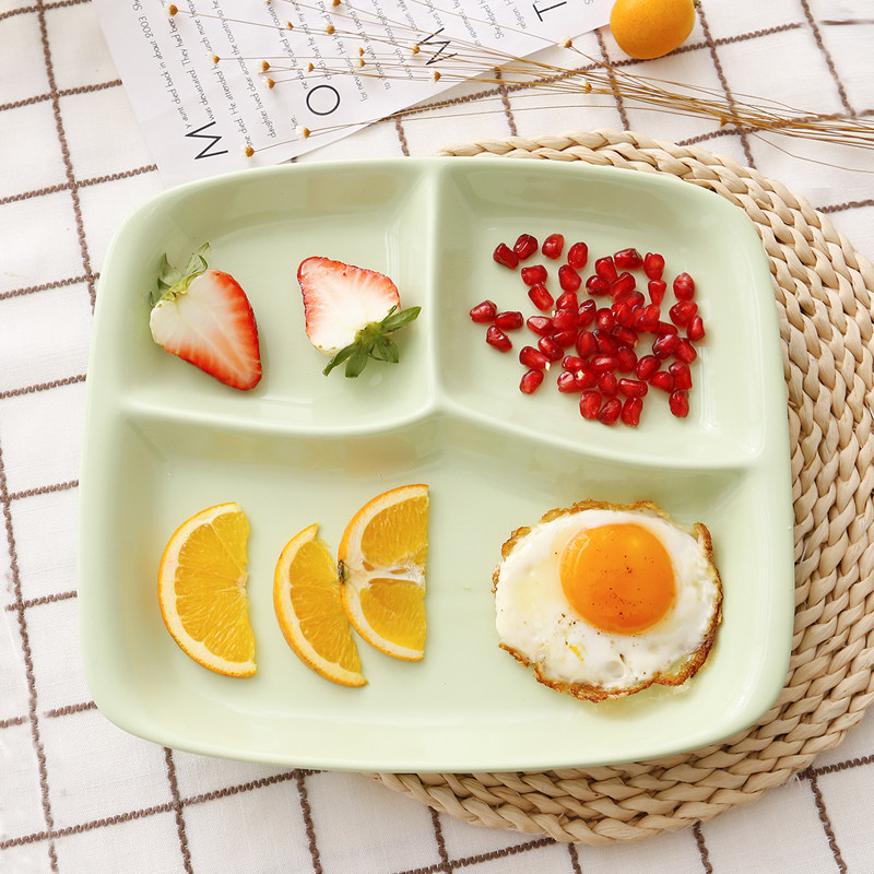 📚 分餐陶瓷分隔餐盘家用饭菜儿童分格陶瓷盘子减脂一人食餐具套装盘