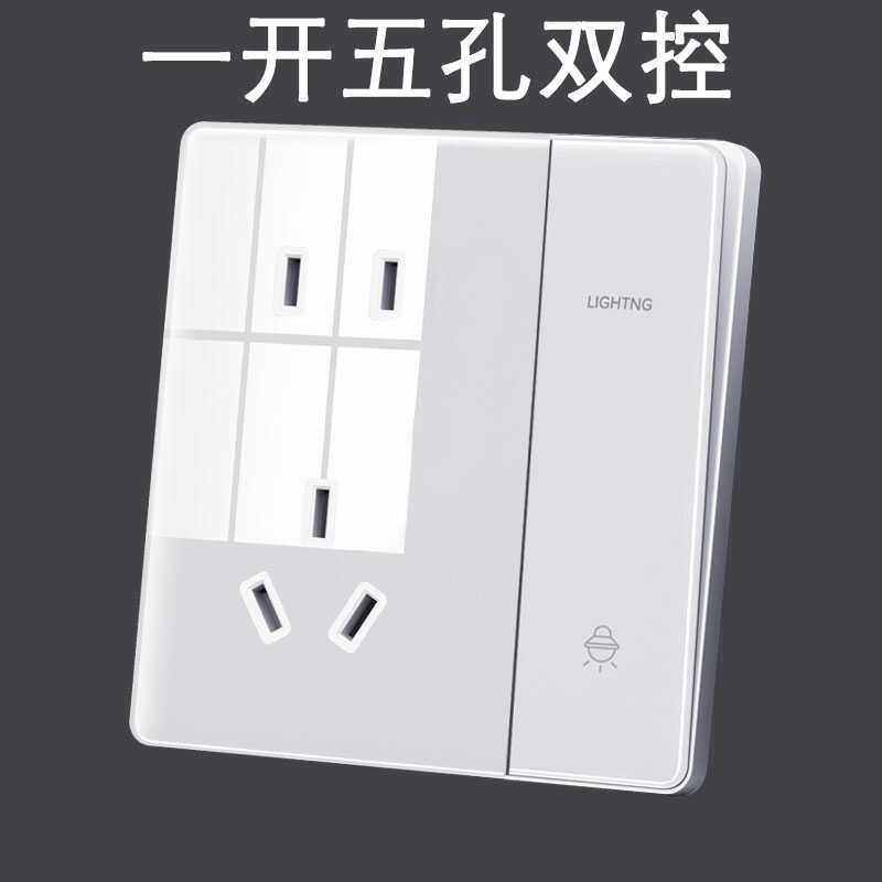 📚 国际电工86型一开五孔双控开关带插座面板家用暗装墙壁电源5眼