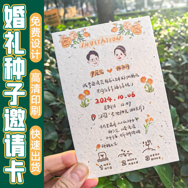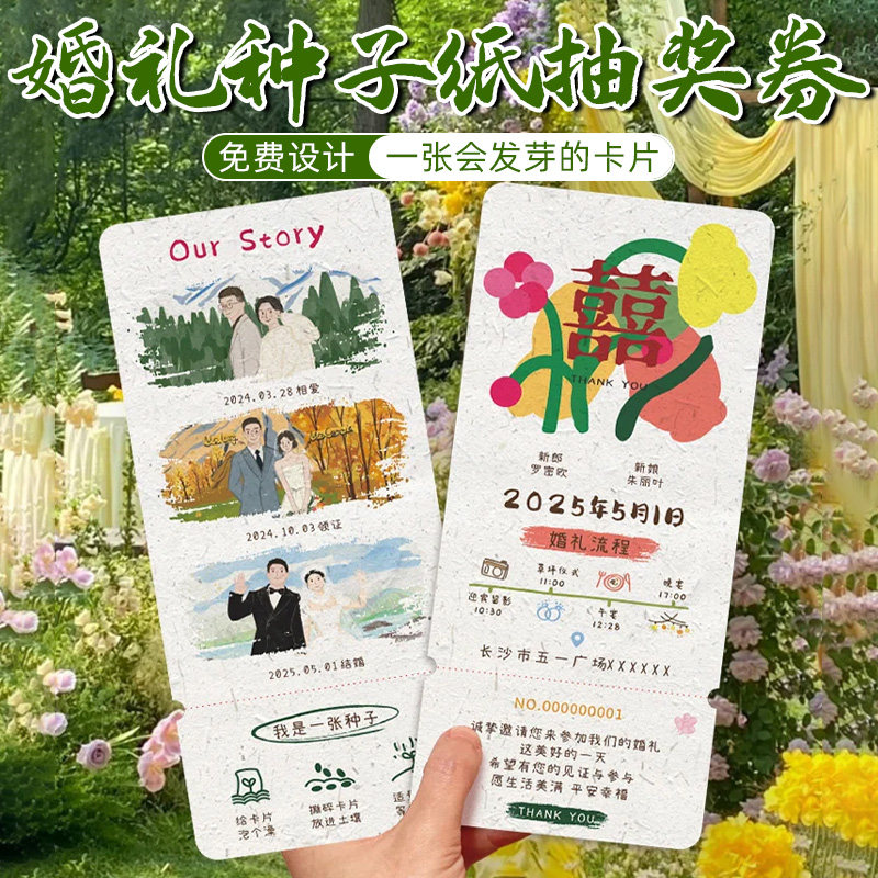 📚 婚礼种子纸卡片定制结婚邀请函票根抽奖券正副券喜糖伴手礼感谢卡订做婚宴活动请柬贺卡发芽纸入场券门票印刷