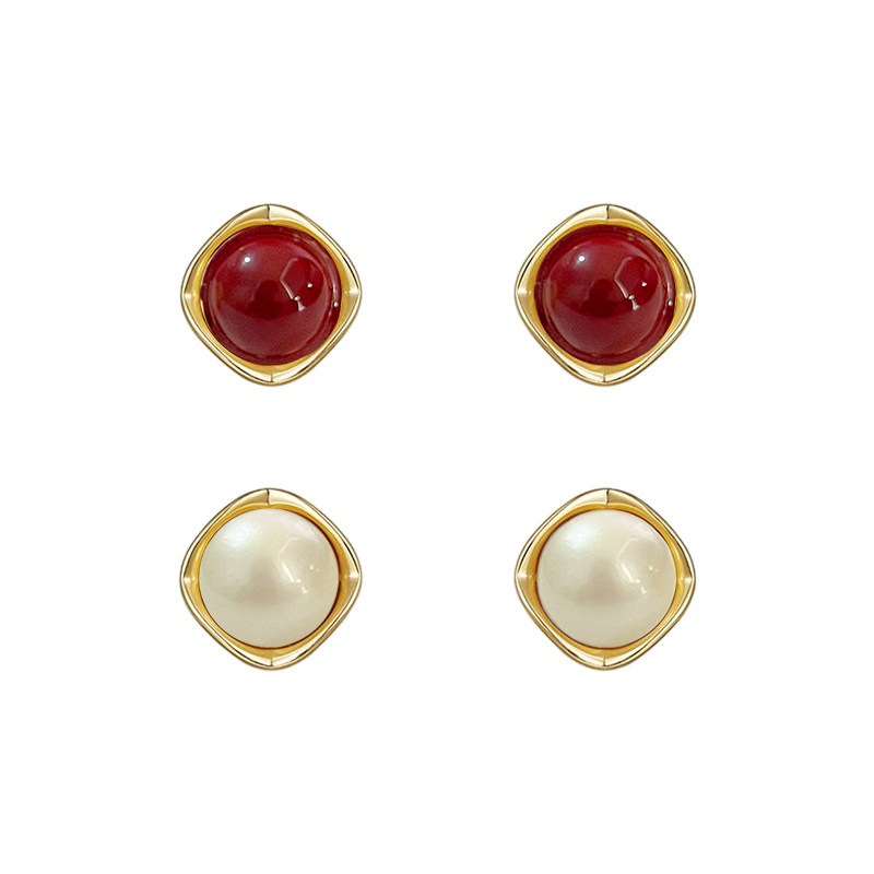📚 法式方形珍珠款耳环女2026新款爆款高级感耳钉巨好看复古几何耳饰