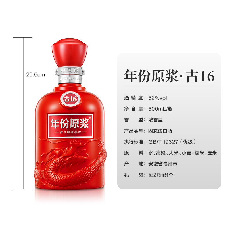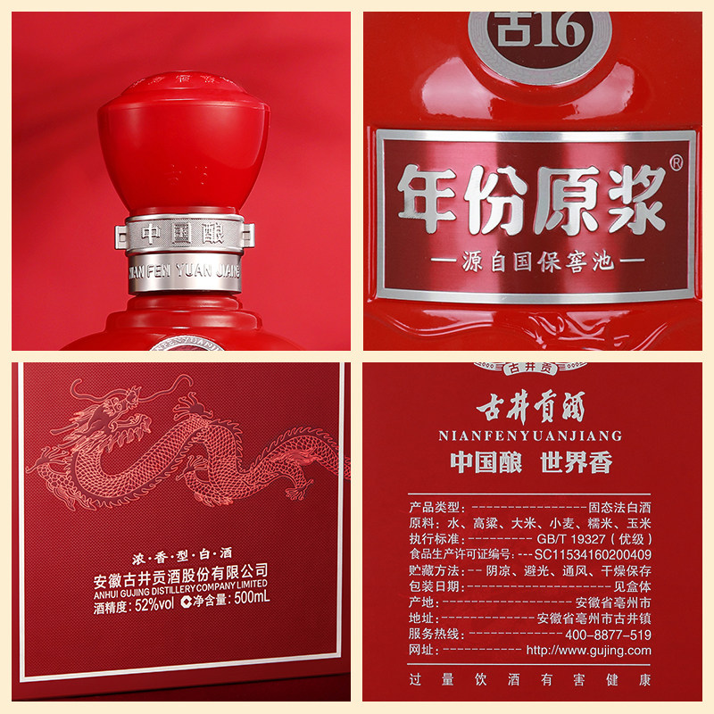 📚 【升级52度】古井贡酒年份原浆 古16送礼红瓶宴席500ml*6瓶整箱装