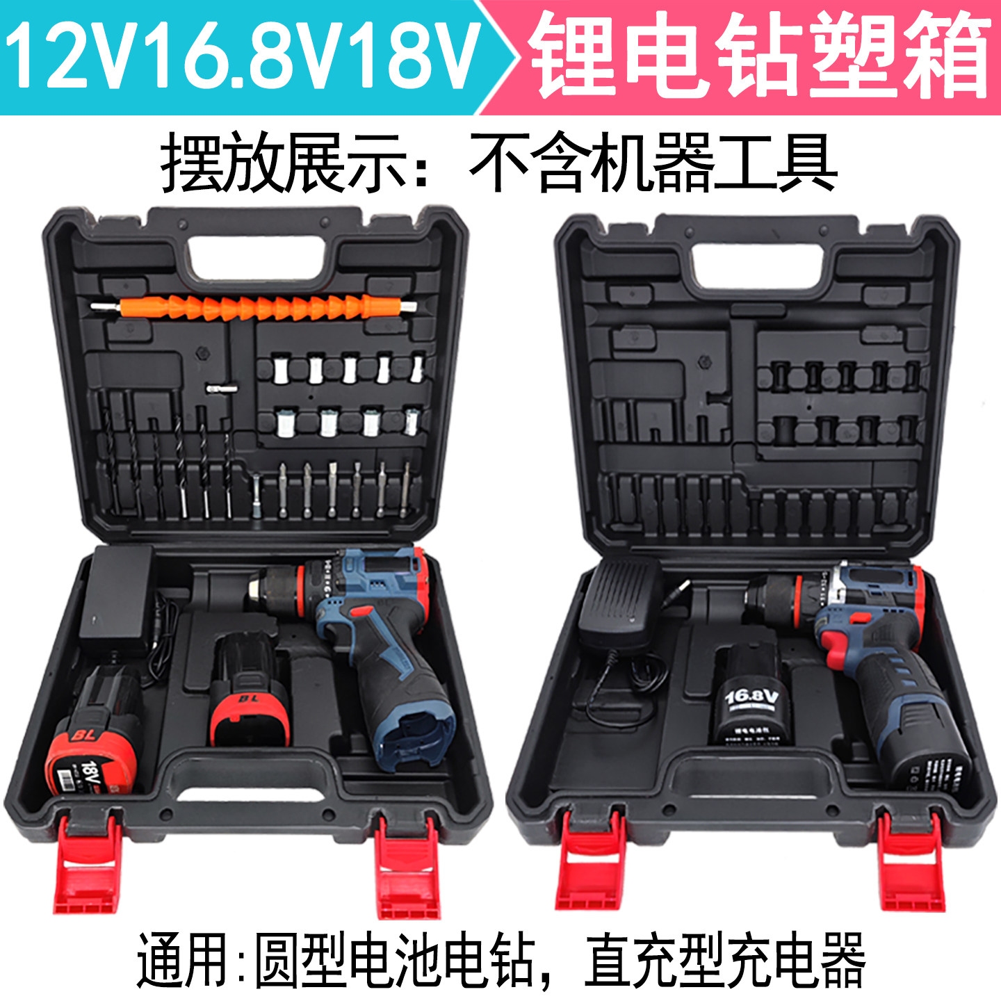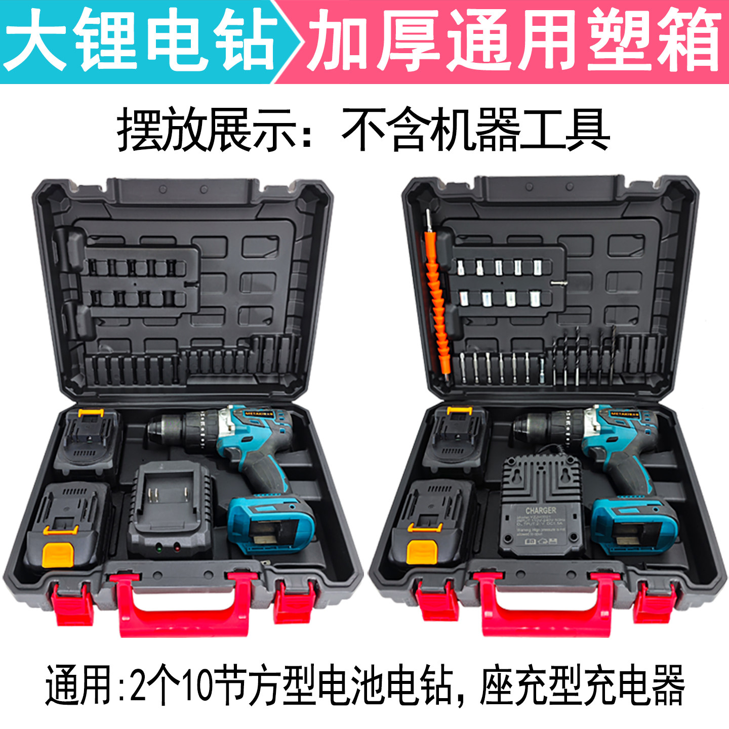 📚 锂电充电钻收纳箱子12V16V18V21V电钻小钢炮电动工具加厚通用塑箱