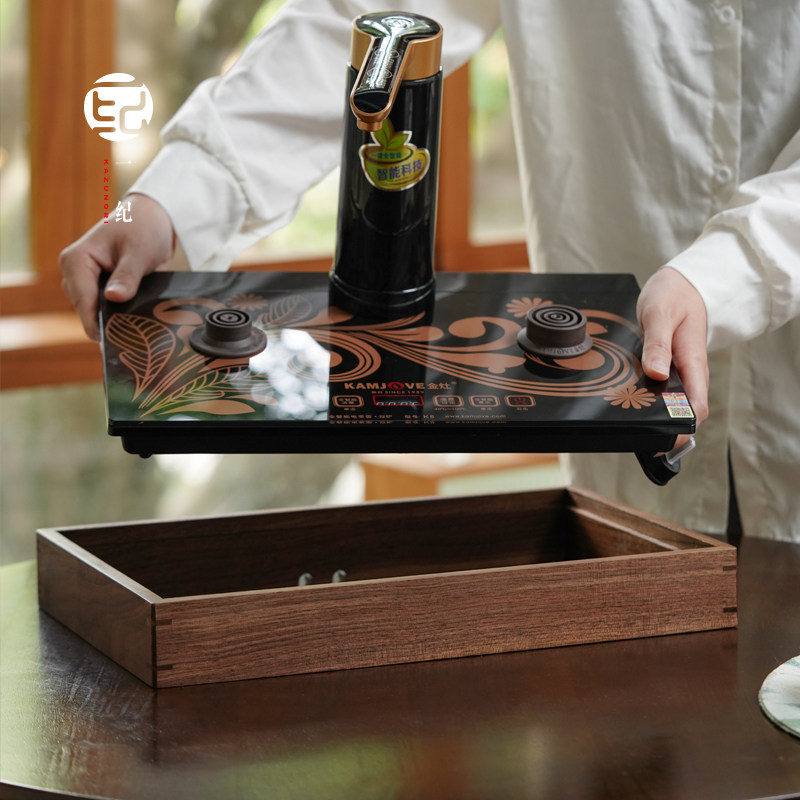 📚 黑胡桃木一体式嵌入茶炉金灶K8K7H7框架茶桌电热水壶配件底座支架