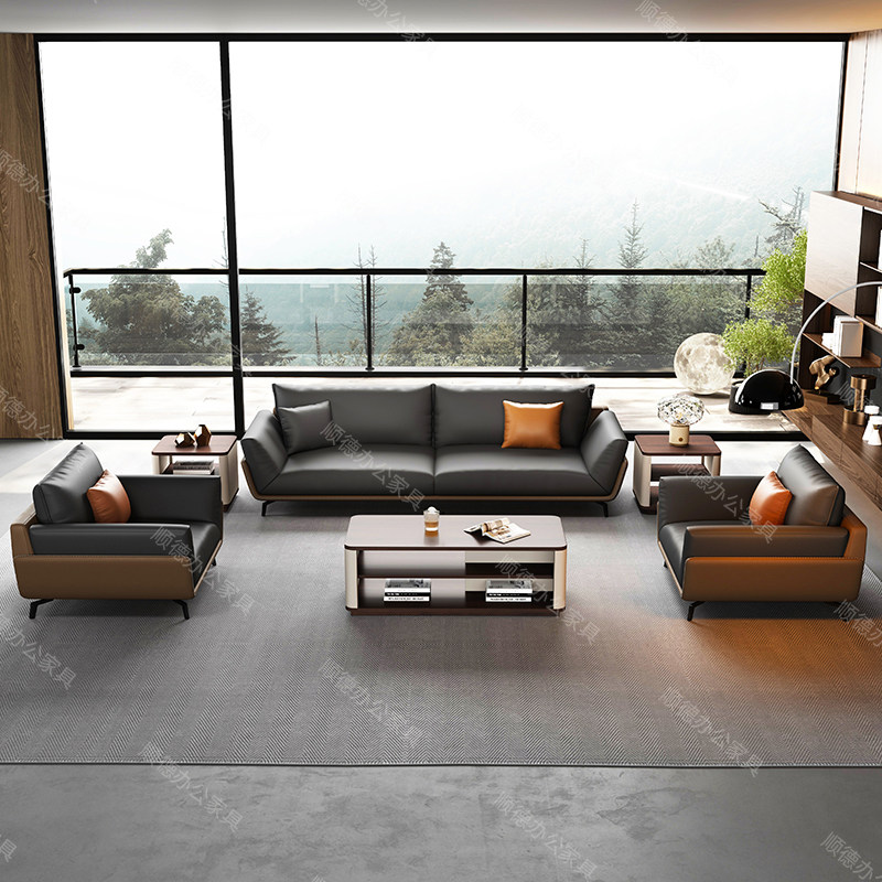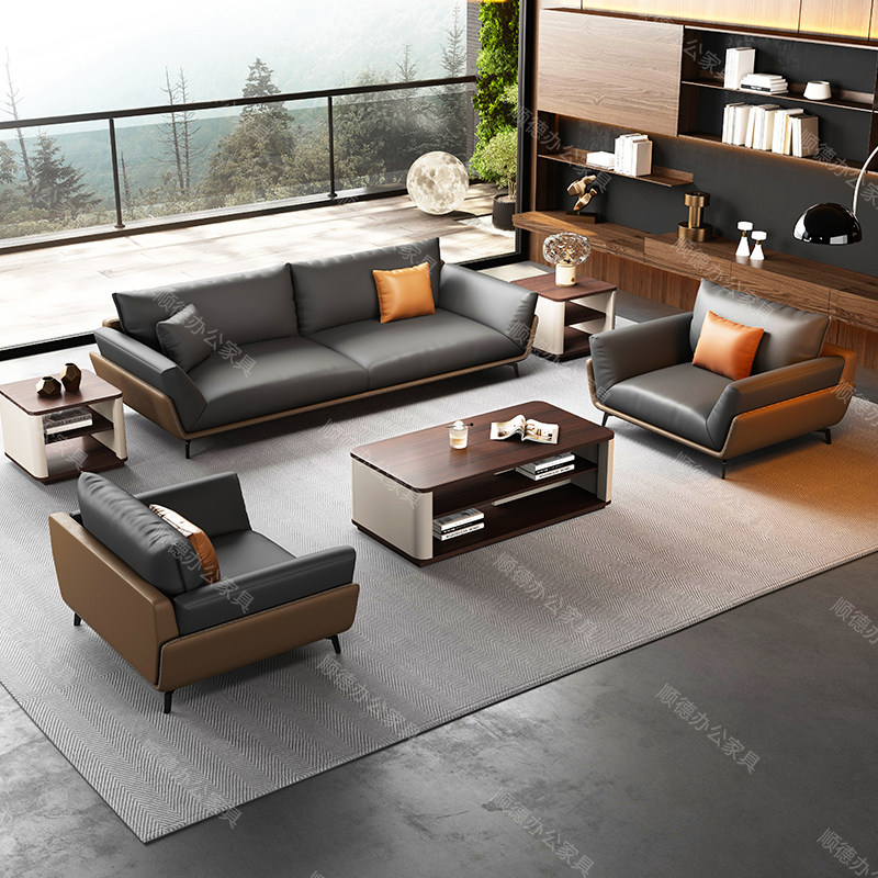 📚 办公室沙发简约现代商务茶几组合套装洽谈会客接待办公沙发三人位
