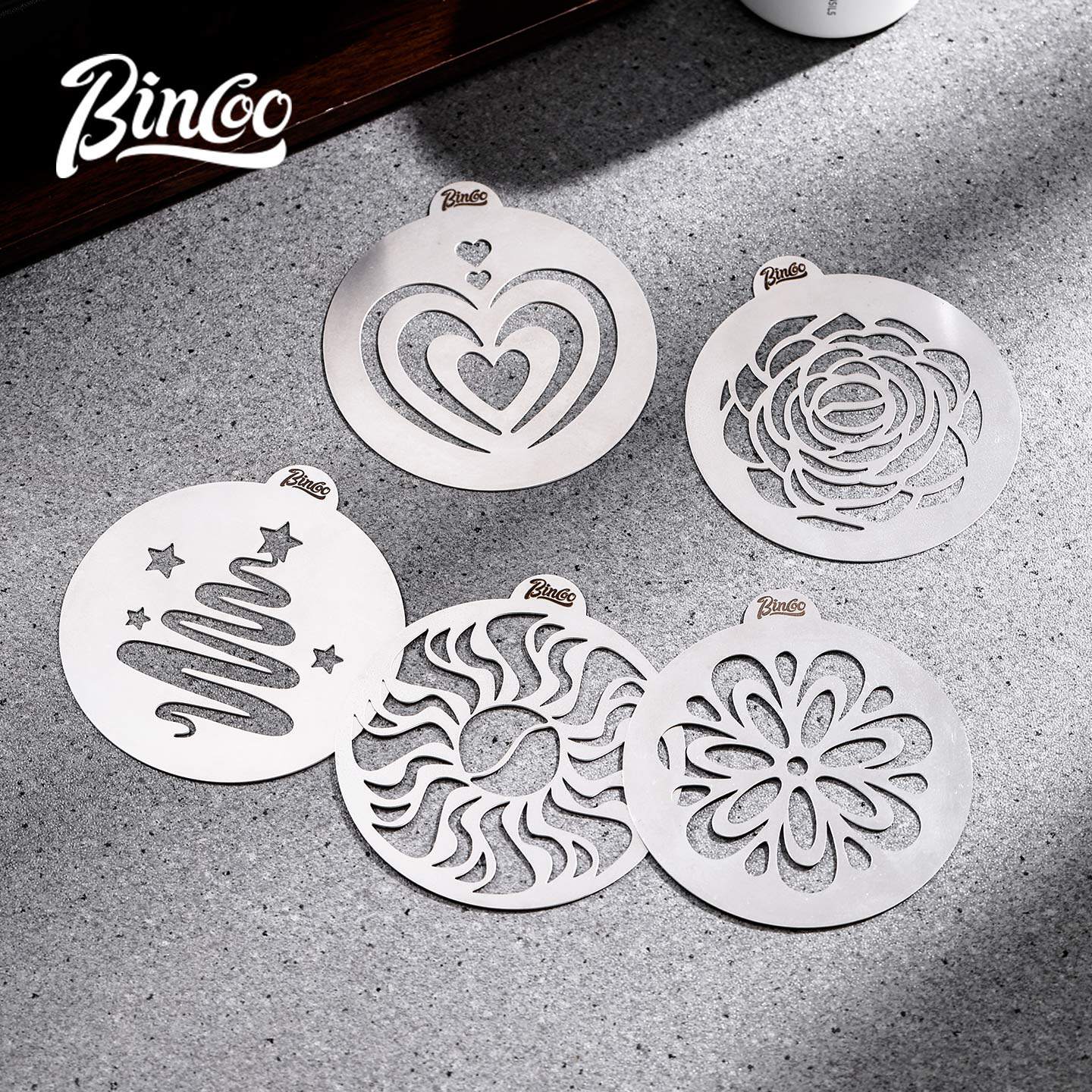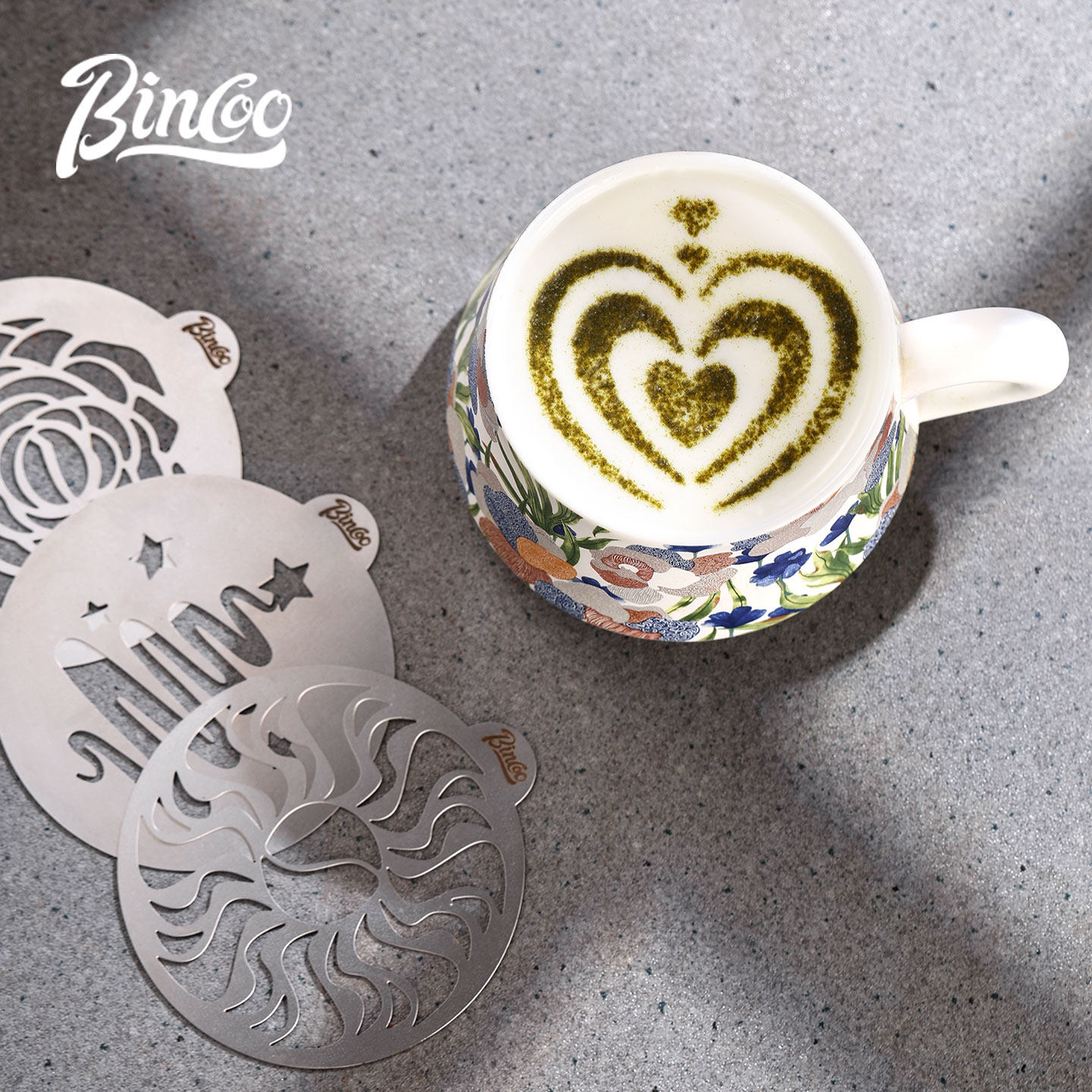 📚 Bincoo拉花片不锈钢雕花神器花式提花图案意式撒粉器咖啡拉花模具