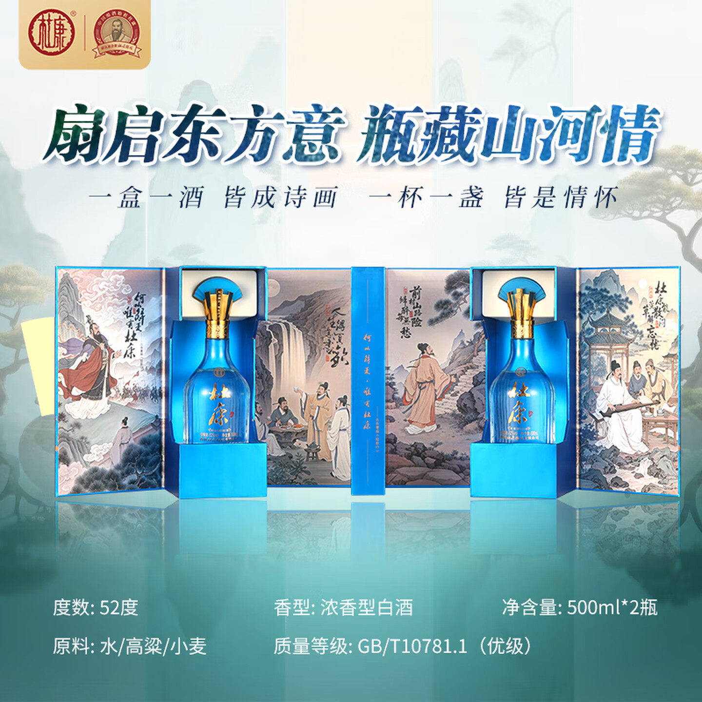 📚 【白酒送礼】杜康文人墨客 浓香型白酒52度500ml*2瓶装双支礼盒酒