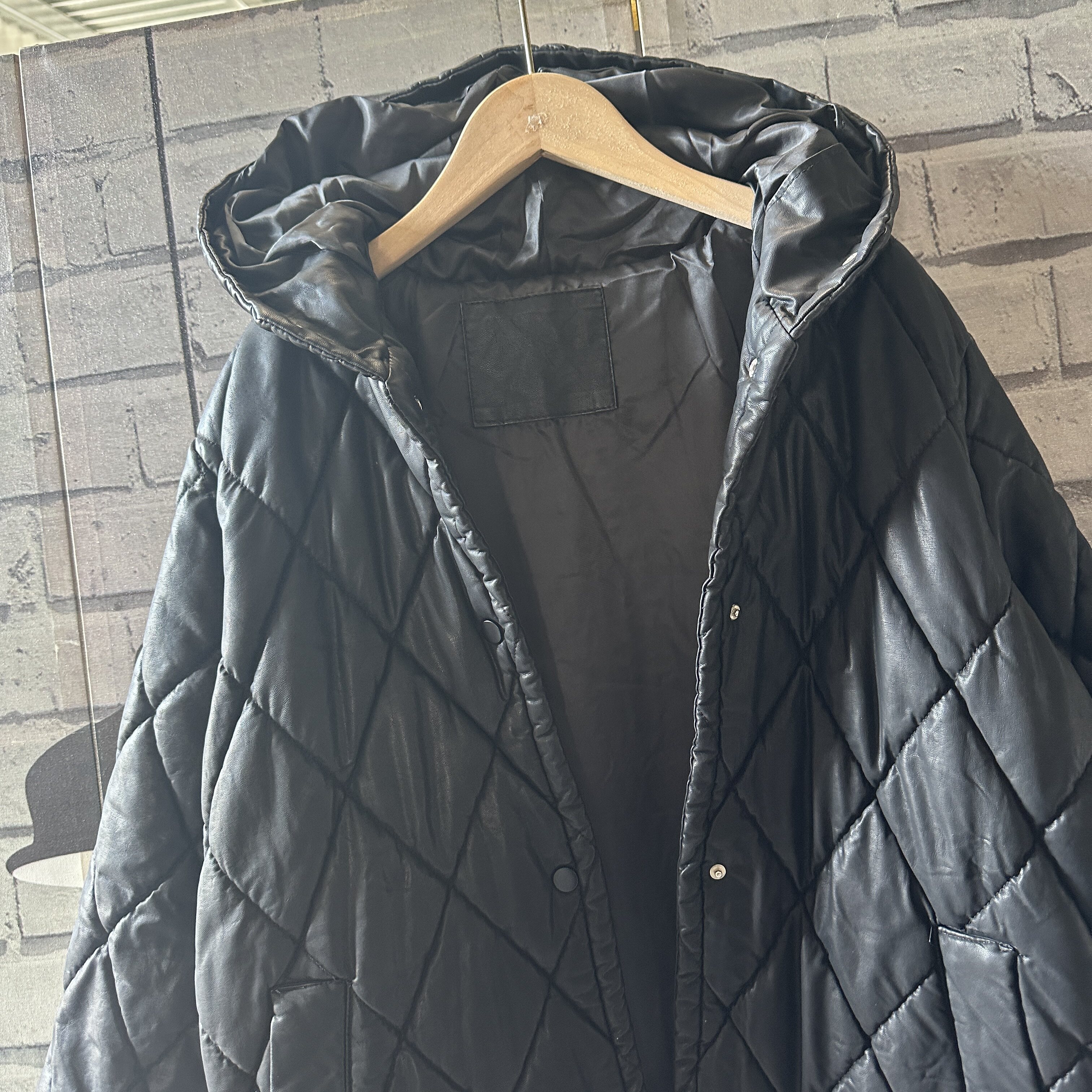📚 胸围106衣长90原单高货复古皮衣连帽宽松大码pu皮棉衣大衣女