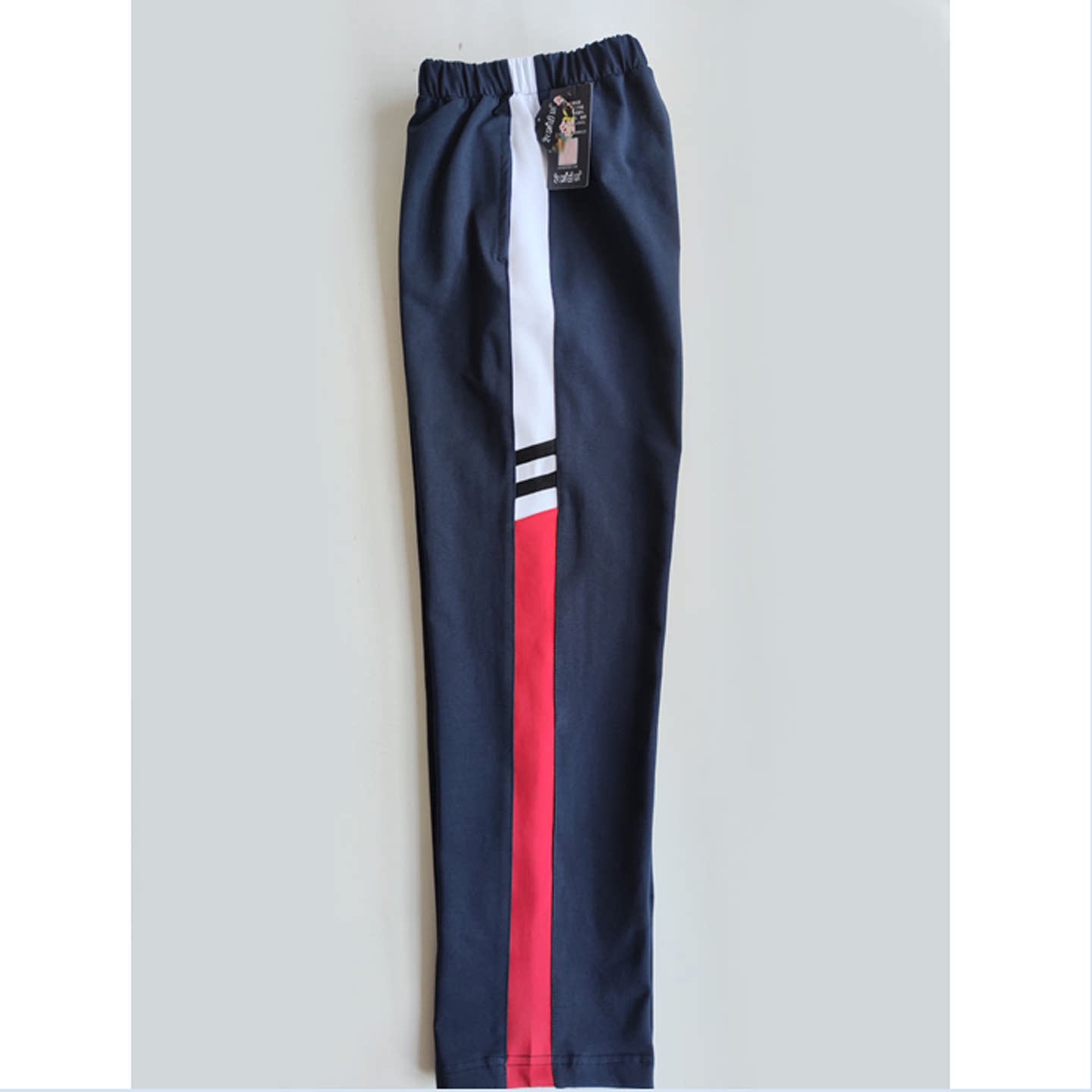 📚 定做中小学生男女校裤拼上白下红宽杠横两道黑杠高腰直筒裤班服棉