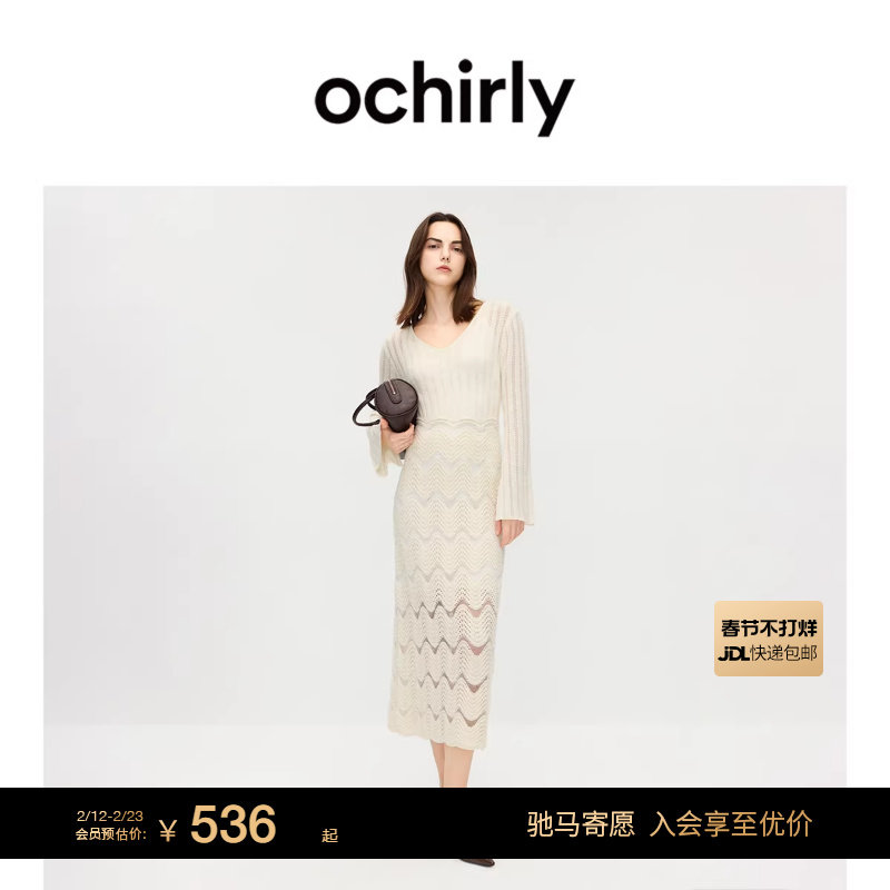 📚 OCHIRLY欧时力 羊毛V领毛织连衣裙长裙配吊带裙2025秋季新品