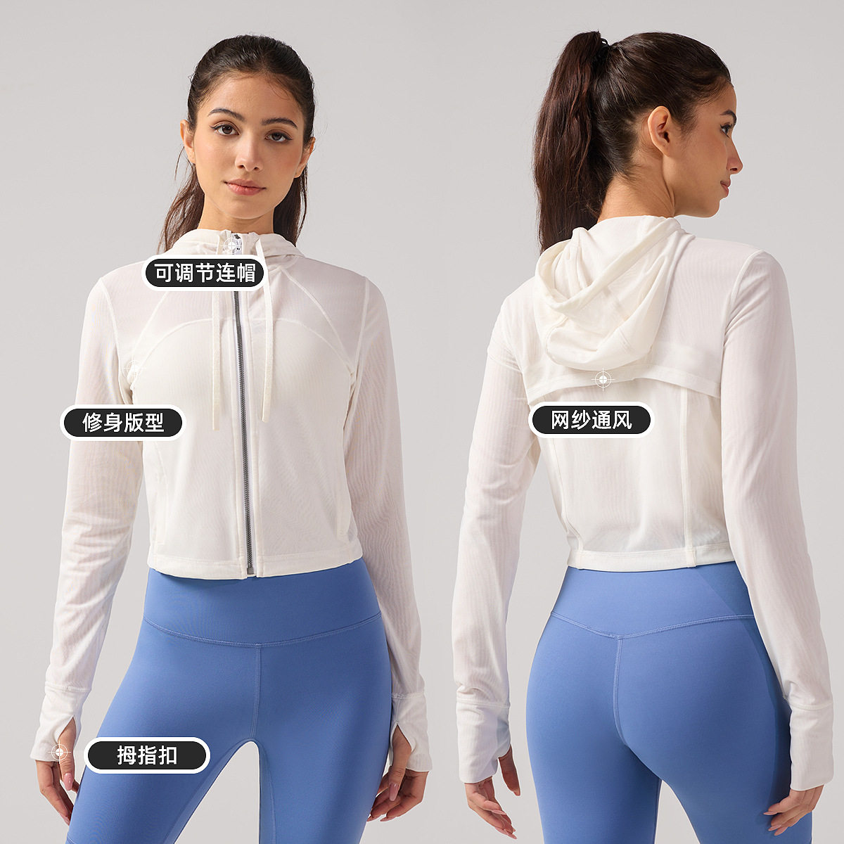 📚 防晒瑜伽服外套Define女士网面短款连帽夹克吸湿透气运动上衣
