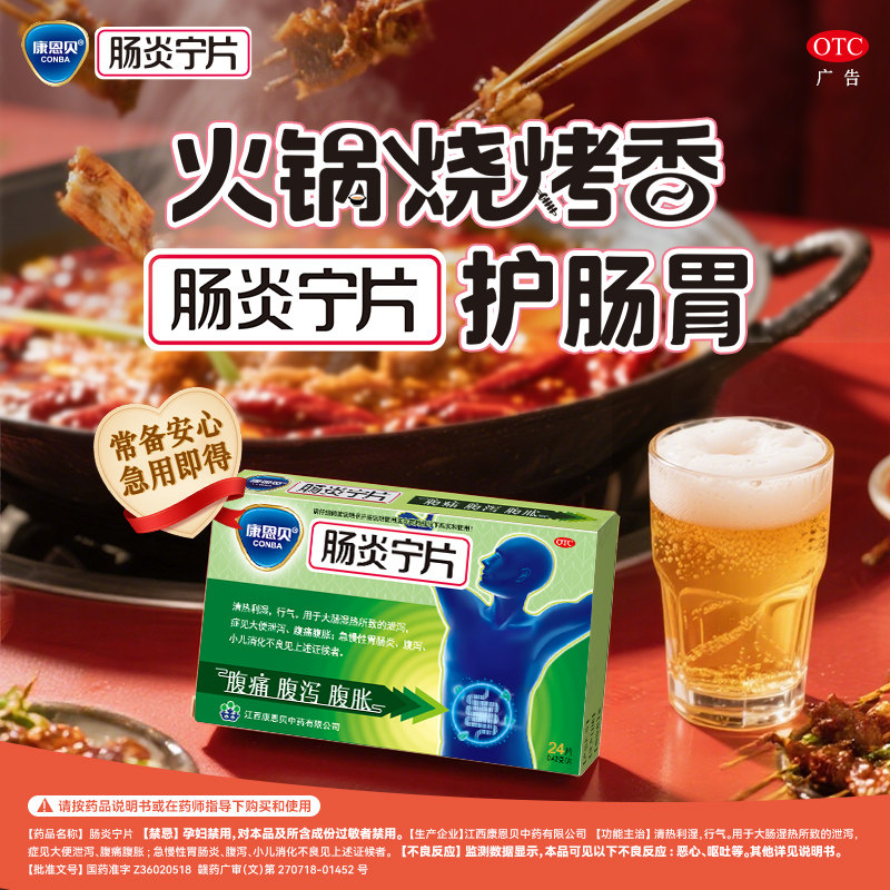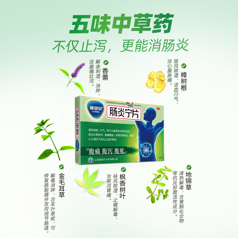 📚 康恩贝肠炎宁片官方急性拉肚子止泻药消化肠胃炎胀气胃肠胃药药房
