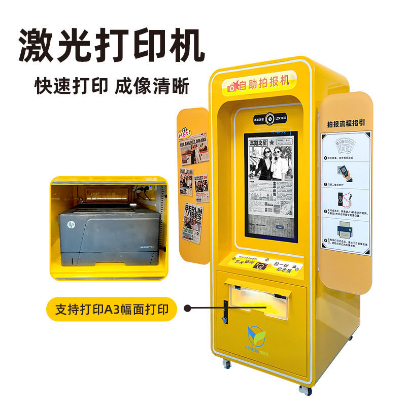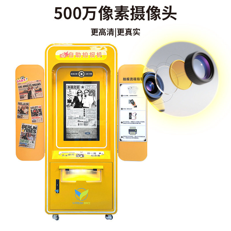 📚 头条报纸机自助大头贴网红打卡拍照一体机景区公园商场互动拍报机