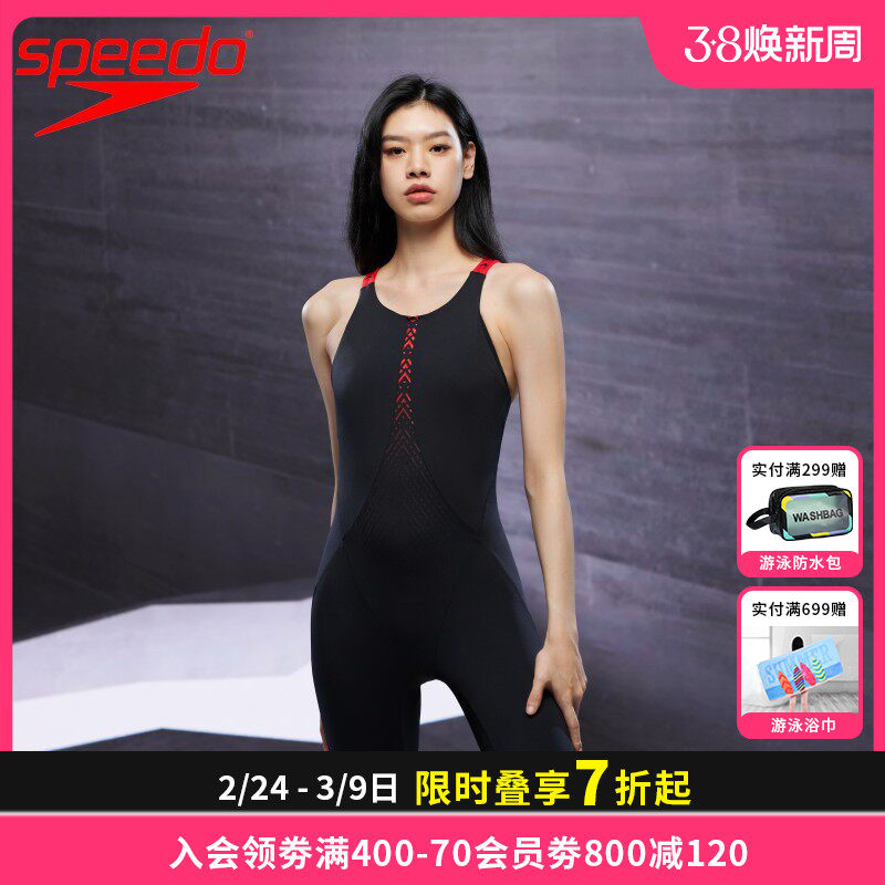 📚 Speedo五分及膝防晒冲浪泳衣女高覆盖修身显瘦时尚印花海边泳装