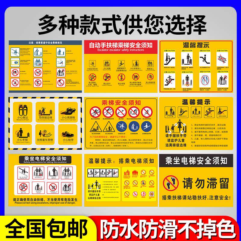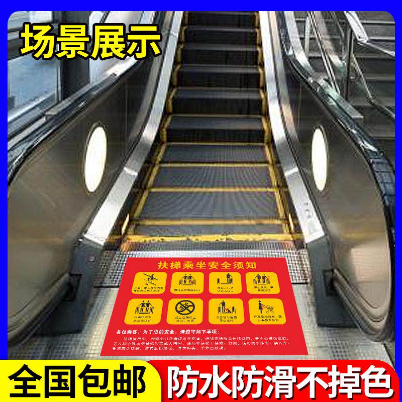📚 乘坐扶梯安全须知提示地贴防水防滑耐磨车站请勿在此停留小心夹脚电梯口标识标志牌警示牌斜纹地贴可定制