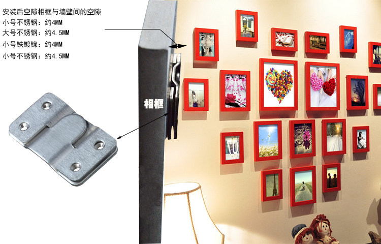 📚 不锈钢相框挂钩墙壁托钩暗装十字绣婚纱照画像画框挂画钉照片托挂