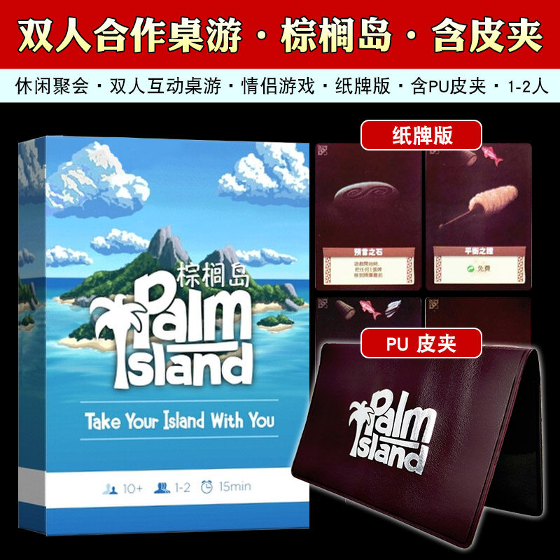 📚 棕榈岛桌游卡牌中文红蓝+皮夹单人solo双人合作1-2人palmIs游戏