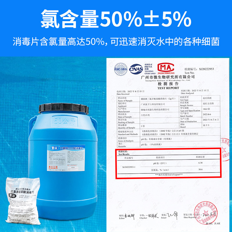 📚 壹泳游泳池消毒片杀菌消毒速溶氧片池水处理含氯片TCCA消毒强氯精