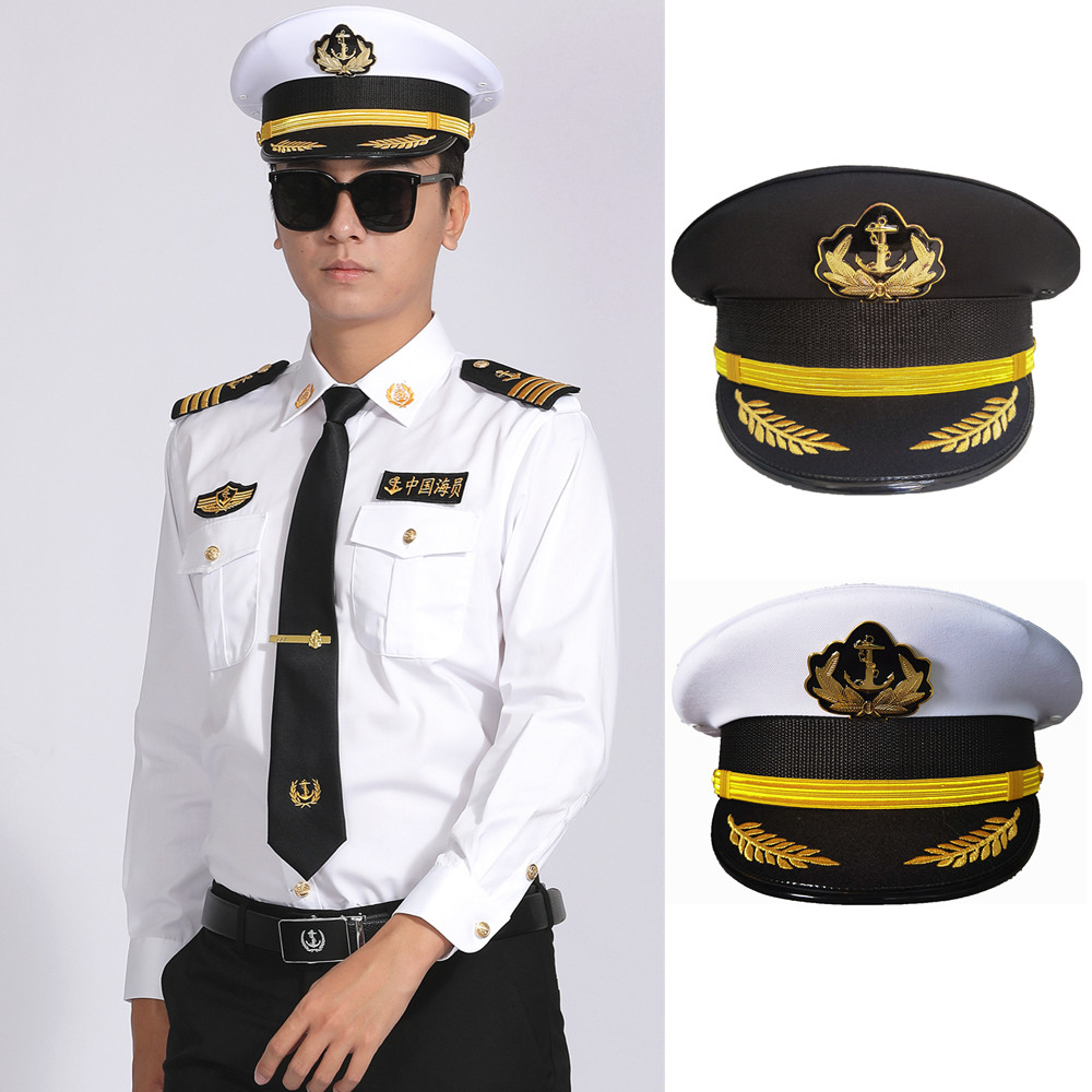 📚 新款海员船长帽轮机长帽男女同款黑白水手太阳帽船员大檐帽舞台帽