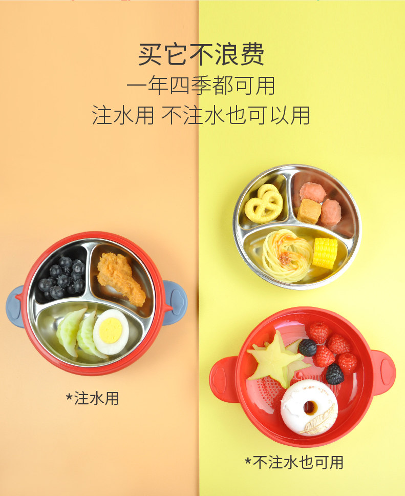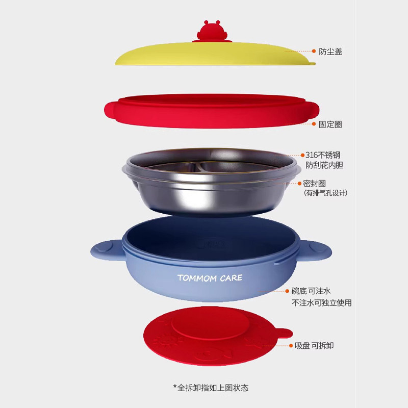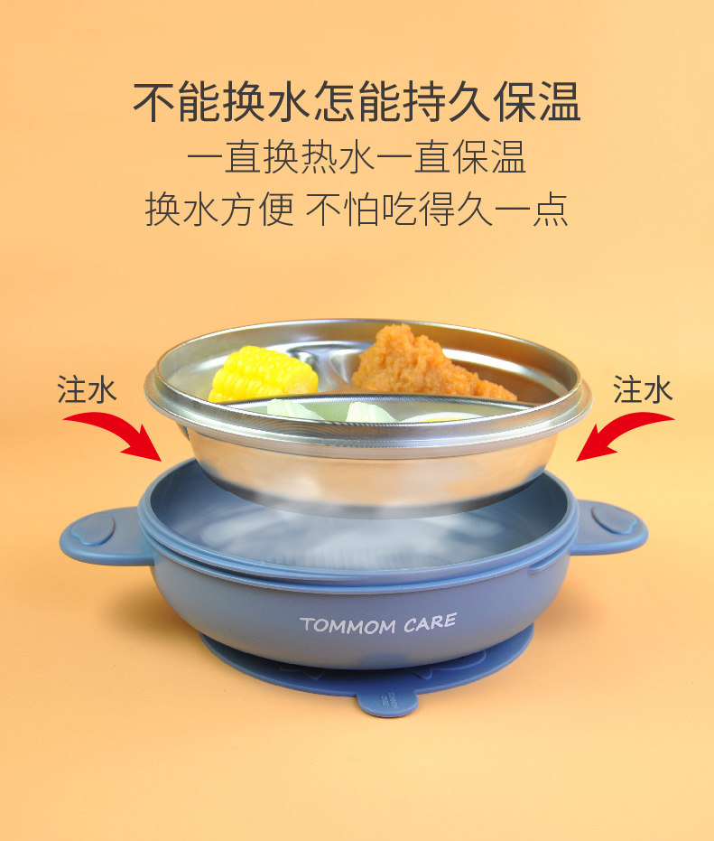 📚 tommom care宝宝餐盘注水保温碗儿童分格餐盘316不锈钢辅食碗吸盘