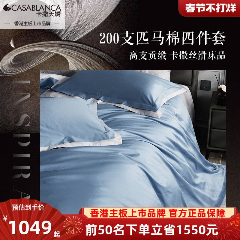 📚 卡撒天娇全棉四件套素色四件套匹马棉200S纯棉高密贡缎床单套件