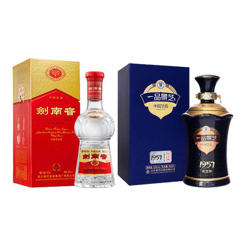 📚 剑南春水晶剑浓香52度500ml+景芝1957 53度 芝香型白酒500ml套装