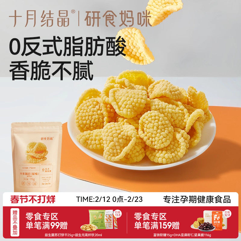 💥"十月结晶研食妈咪孕期零食大揭秘:小米锅巴,营养满满,券后价仅18.9!好孕气来"
