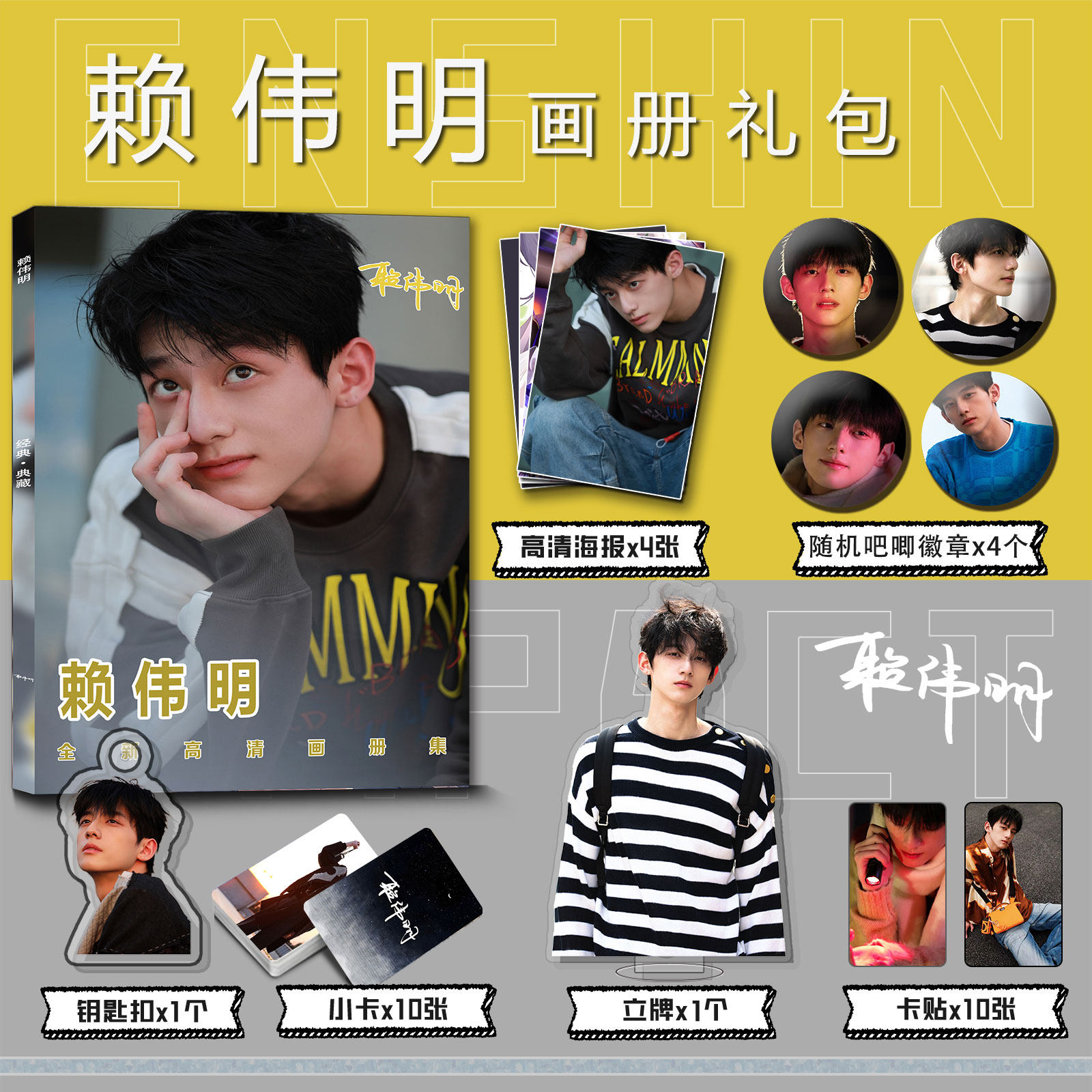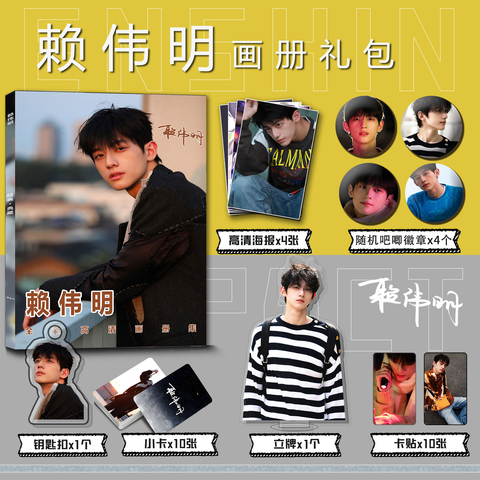 📚 赖伟明个人周边写真集钥匙扣立牌小卡吧唧徽章海报明信片收藏爱豆
