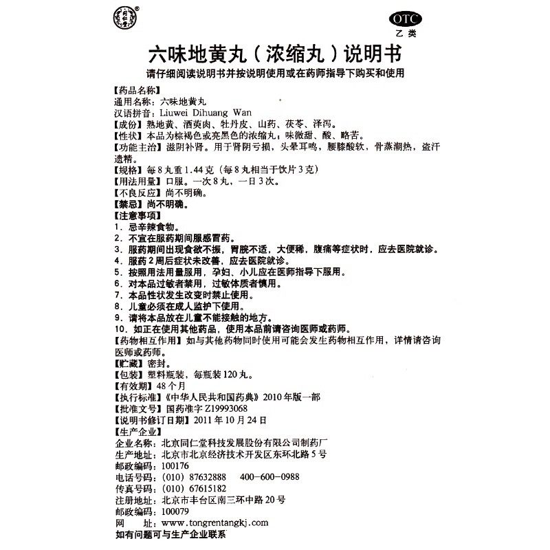 📚 同仁堂六味地黄丸正品120丸浓缩丸滋阴补肾北京同仁堂官方旗舰店