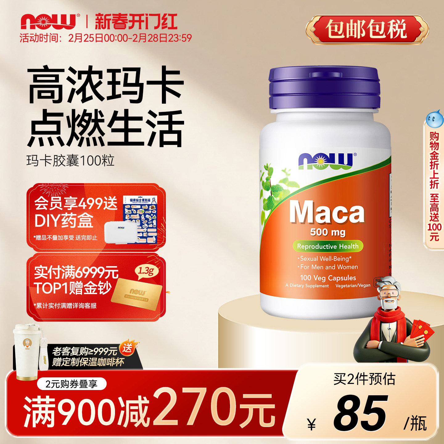 📚 NOW玛卡Maca高浓缩片玛咖胶囊滋补男性活力生殖健康诺奥美国进口