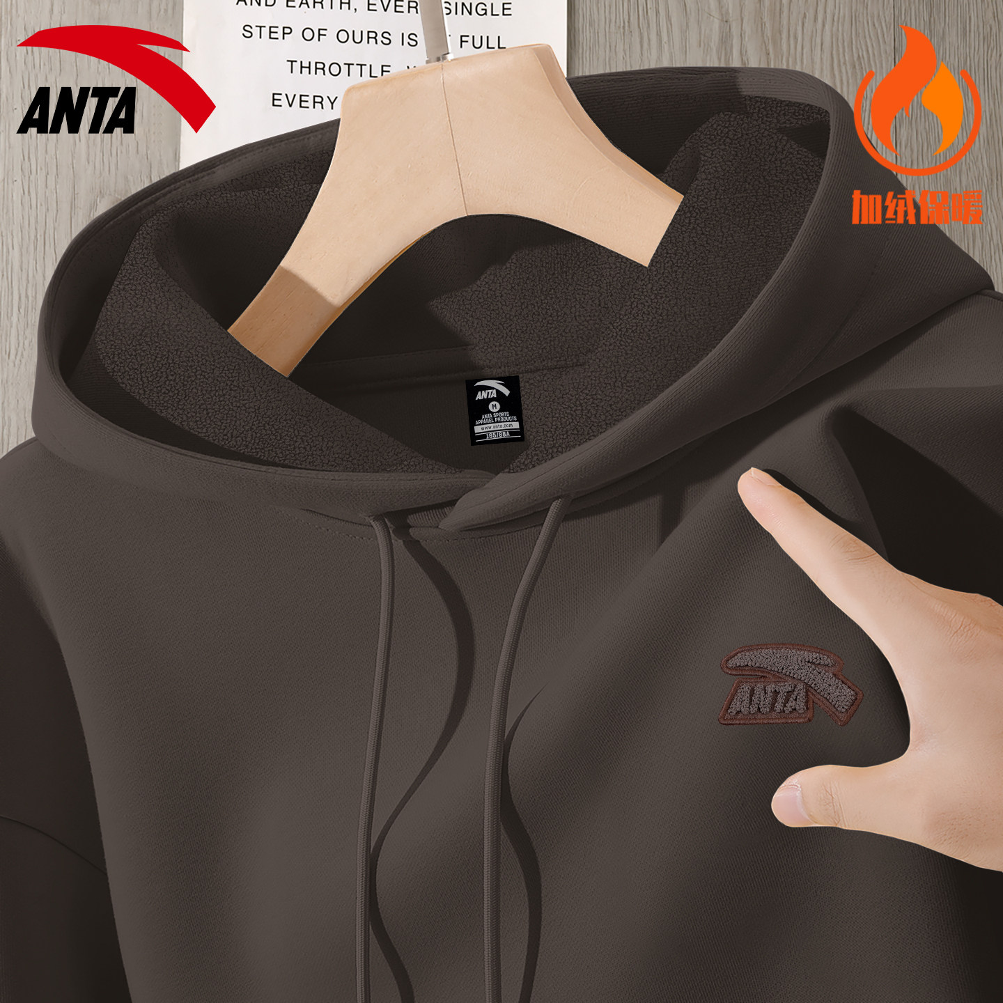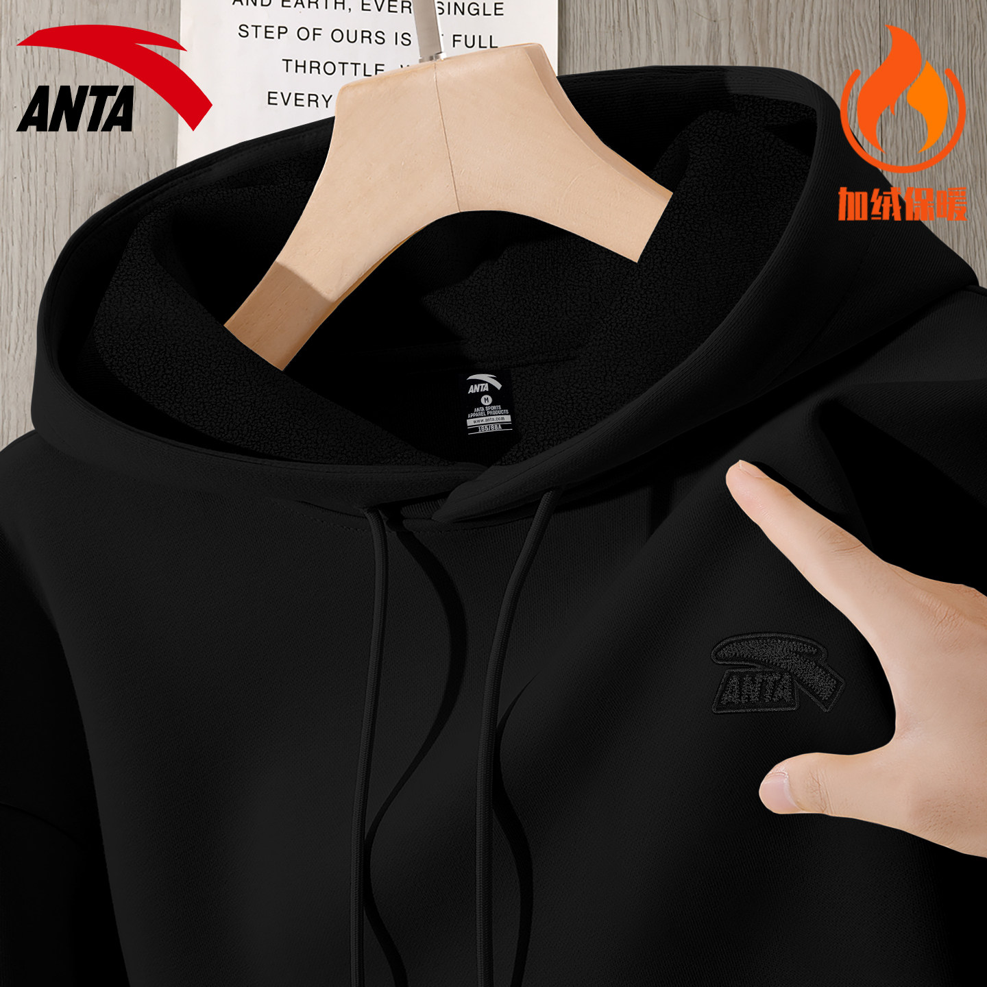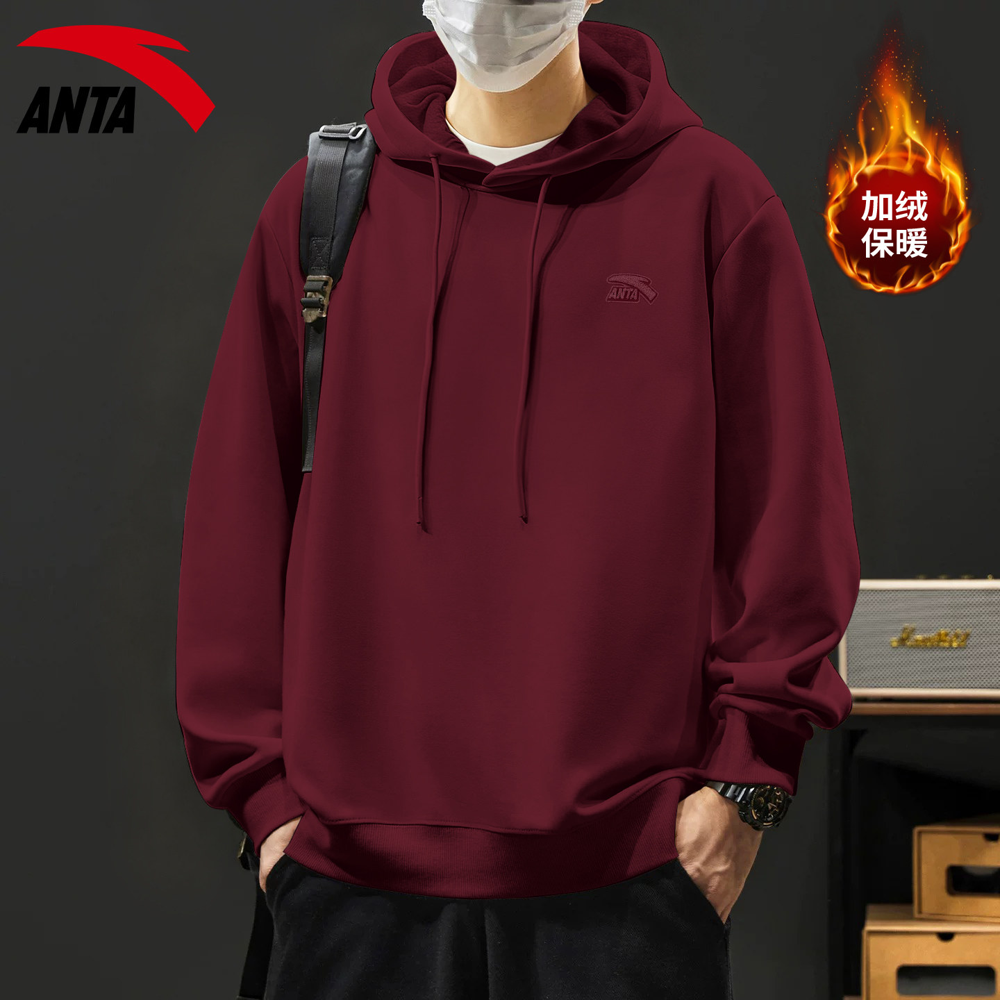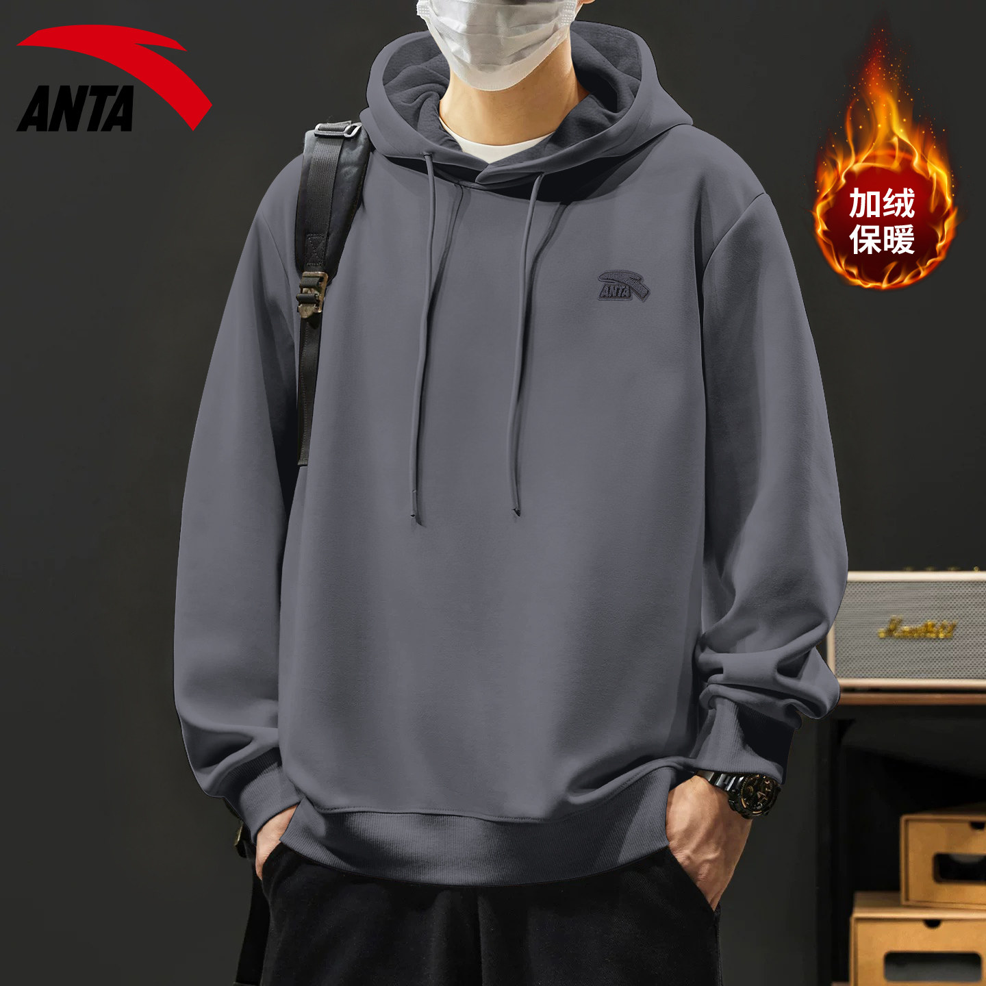📚 安踏运动卫衣男生连帽学生潮流加绒加厚保暖2025冬季新款外穿长袖