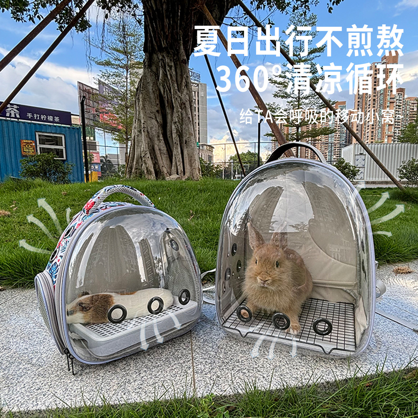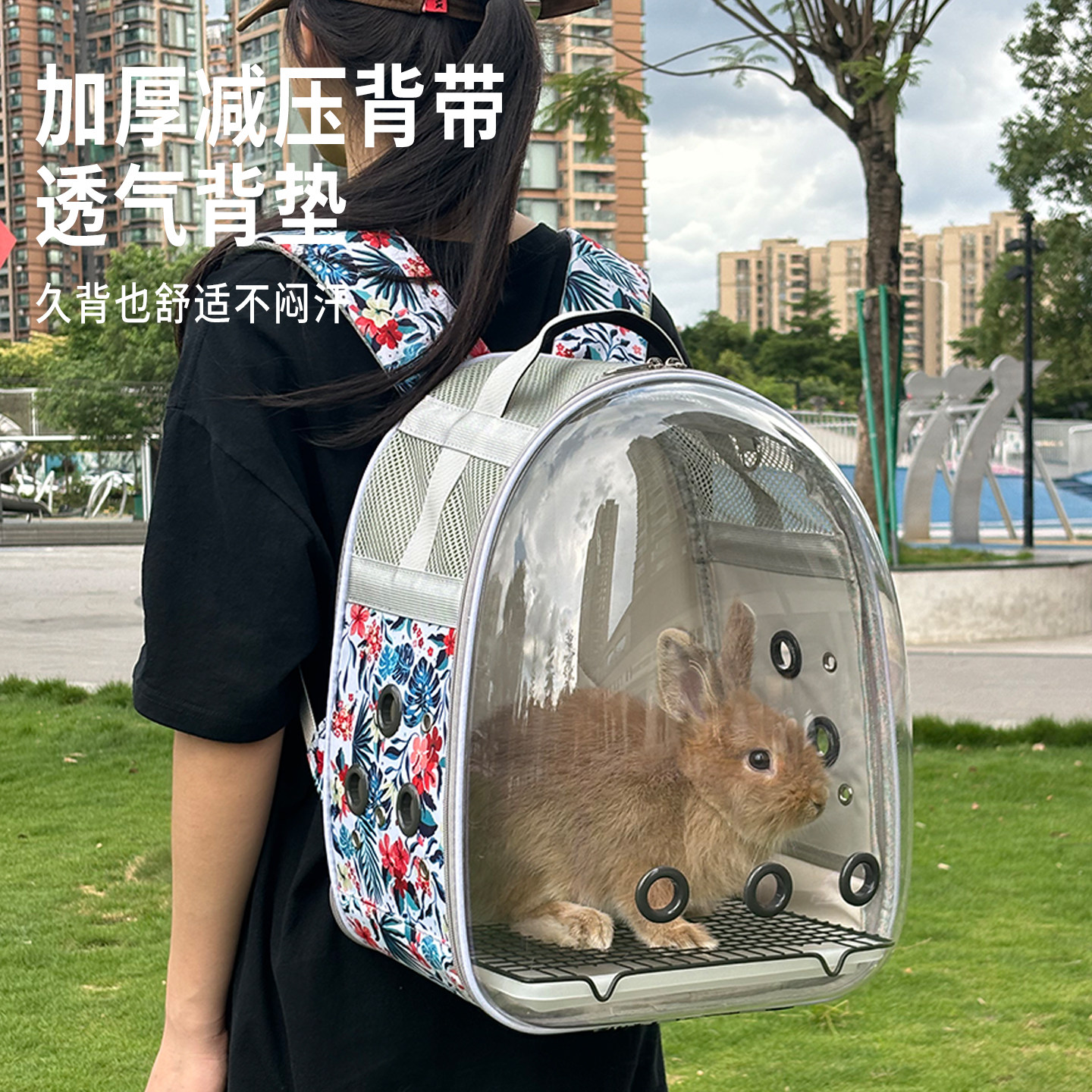 📚 兔子外出包透气专用笼子用品携带荷兰猪小宠物侏儒兔背包带厕所