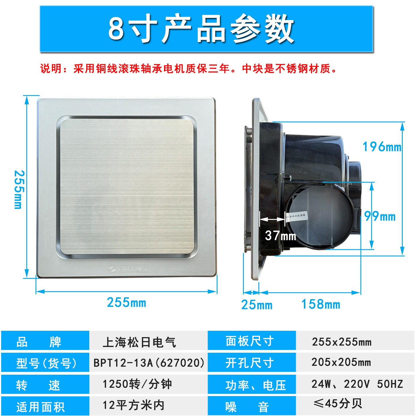 📚 松日排气扇8寸换气扇 厨房卫生间抽风机10寸吸顶排风扇静音