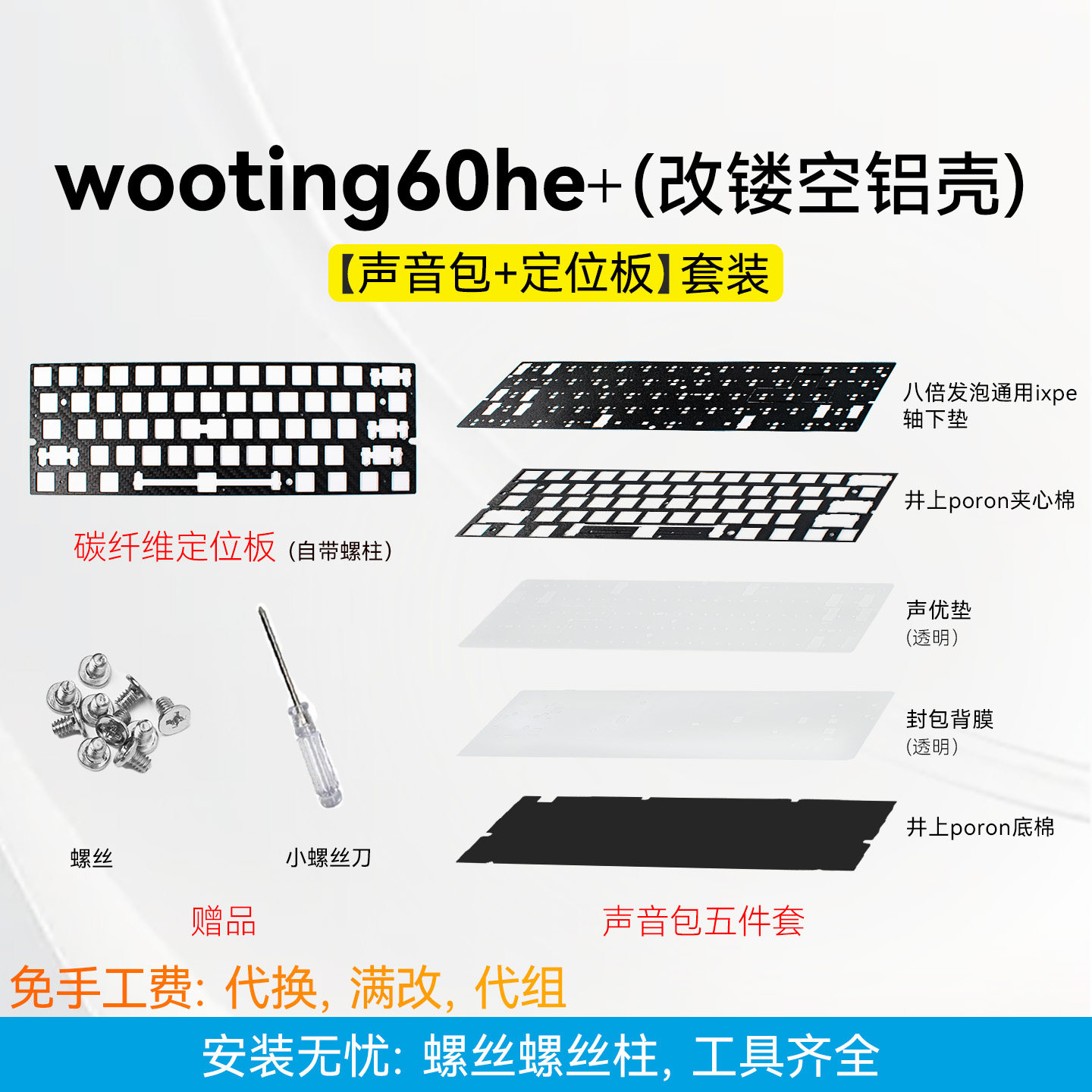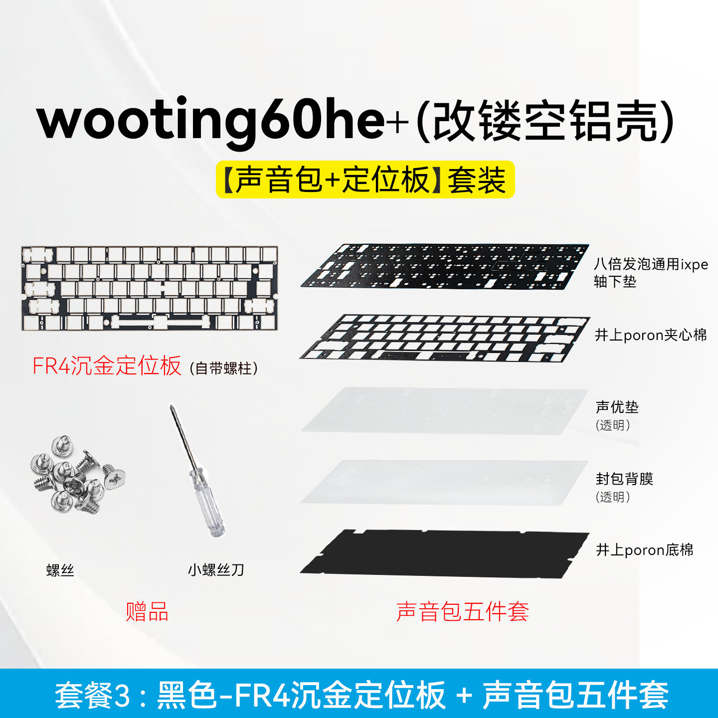 📚 声音包+定位板|Wooting60he v2满改磁轴镂空外壳/碳纤维fr4沉金+