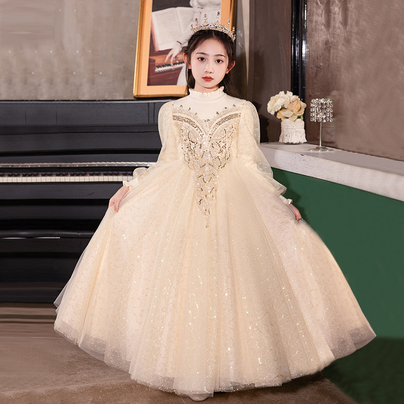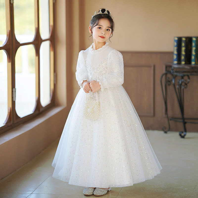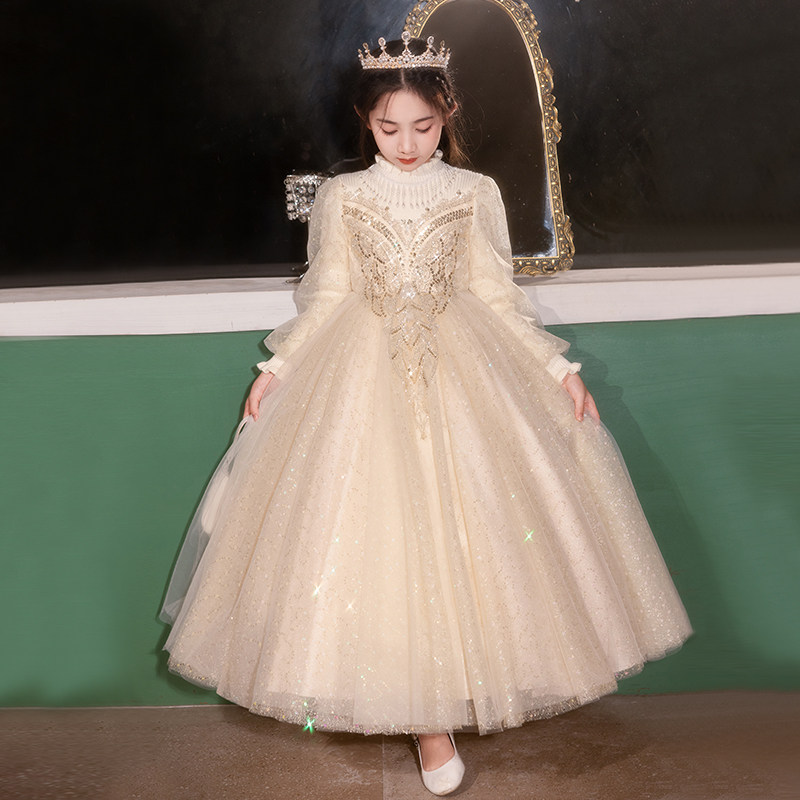 📚 女童公主裙婚纱礼服长裙花童钢琴演出服儿童装高端冬季主持人生日