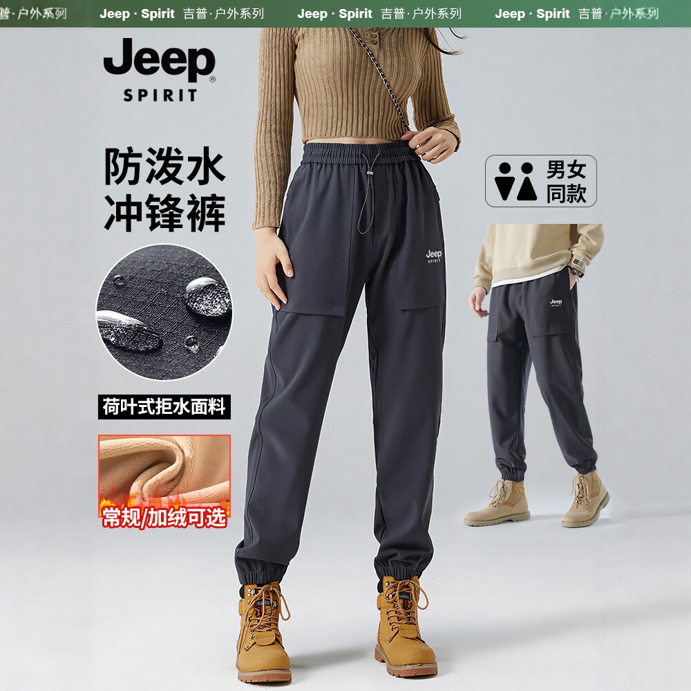 📚 吉普冲锋裤男新款男裤运动裤冬季工装裤男士加绒加厚冬装休闲裤子