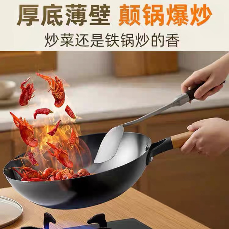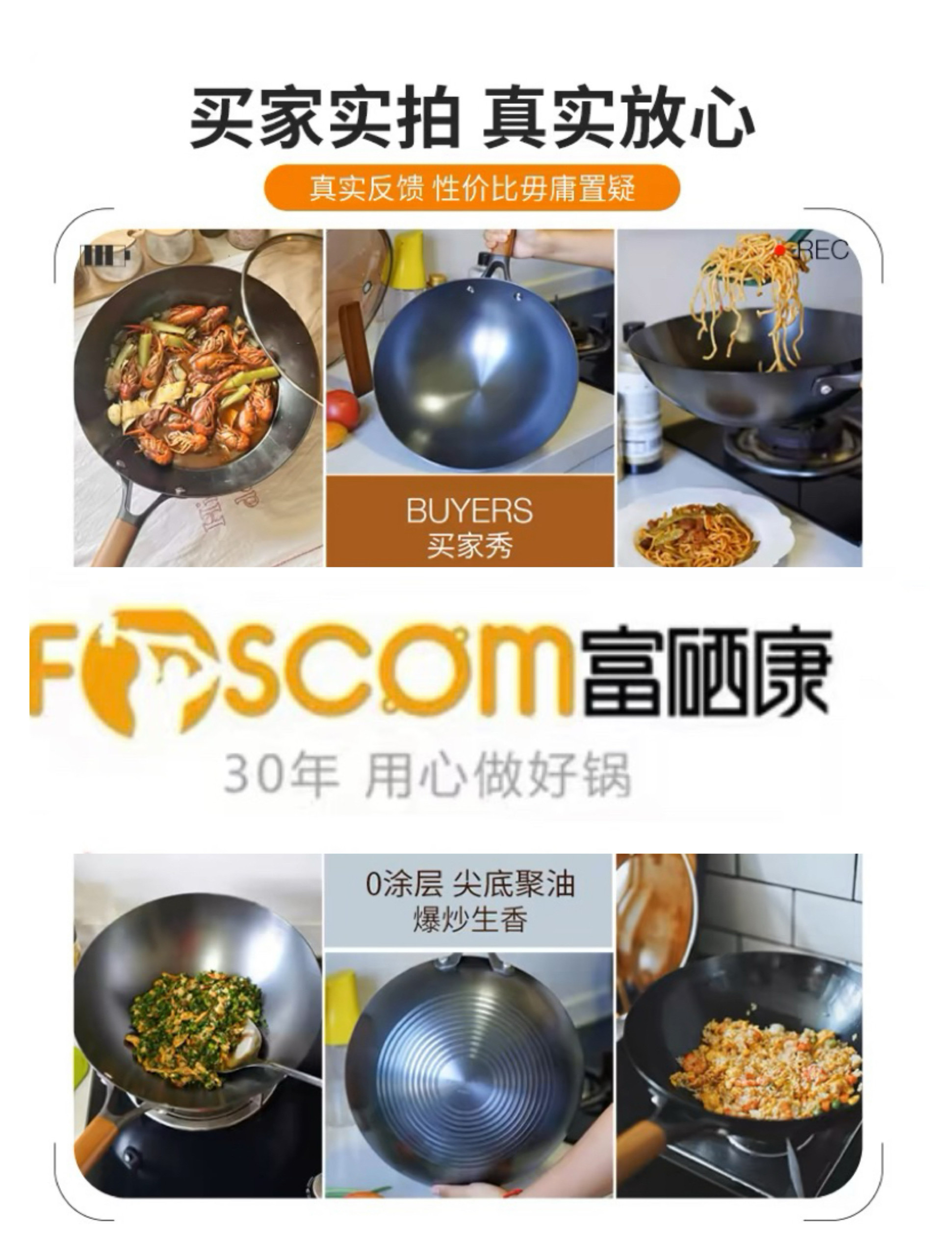 📚 富硒康圆底爆炒家用炒菜锅炒锅无涂层不生锈炒锅明火燃气灶适用