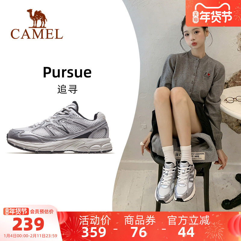 📚 迪丽热巴同款骆驼追寻户外鞋女徒步鞋透气男女鞋银灰色复古老爹鞋