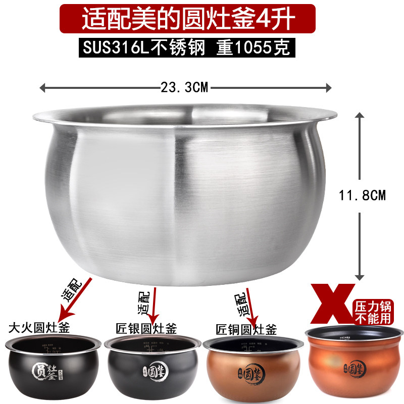 📚 适配美的电饭煲内胆4L0涂层316L不锈钢WFS4037/WFS4057/4017内锅