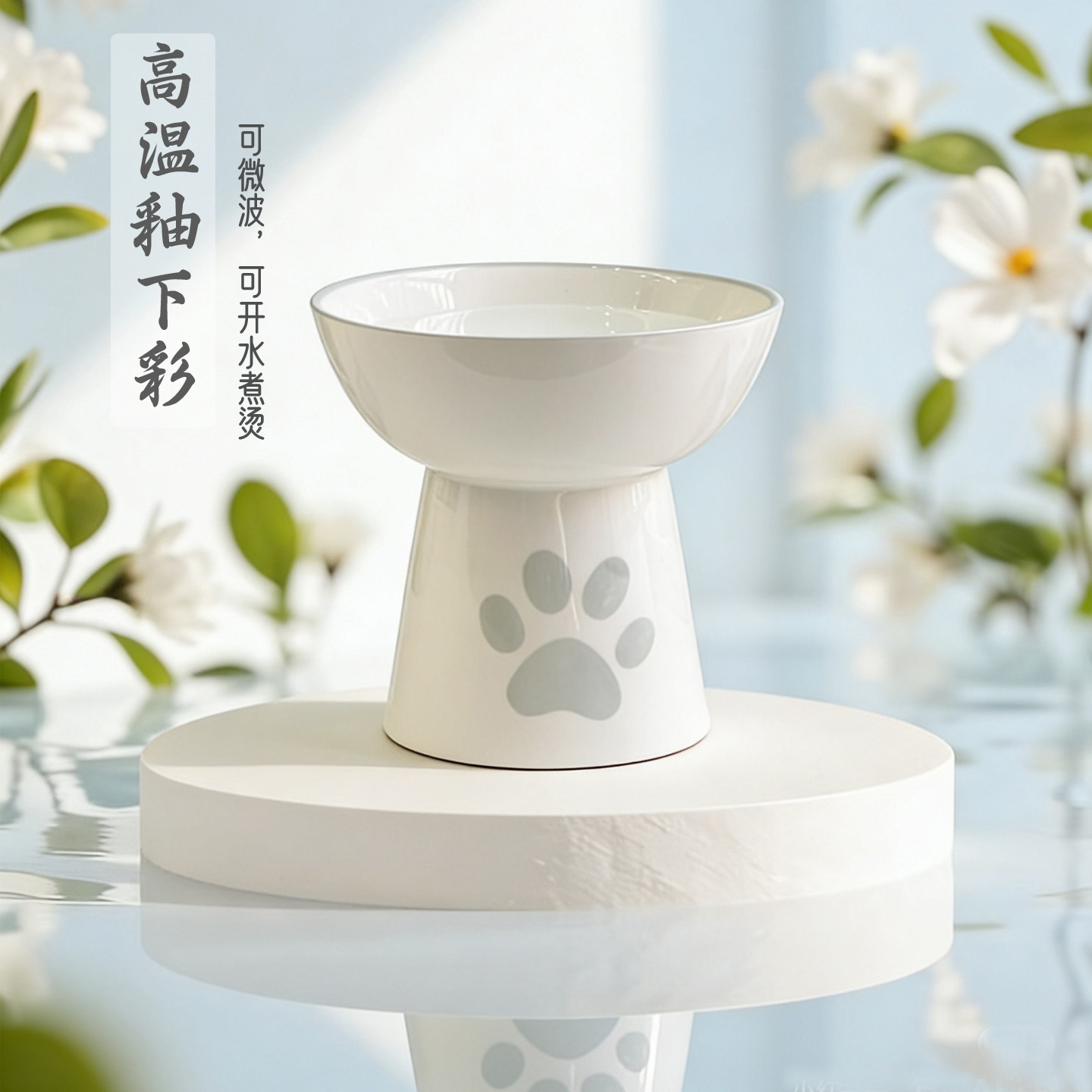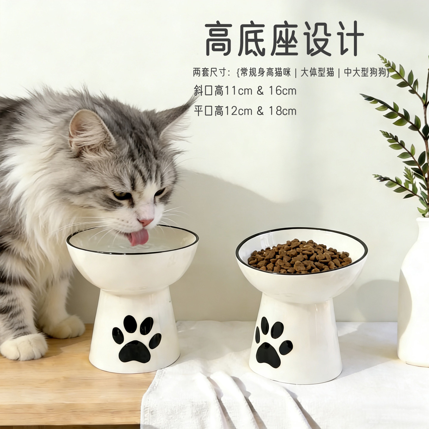 📚 陶瓷大体型缅因猫碗大型狗狗斜口饭碗高脚护颈猫粮碗大容量水盆