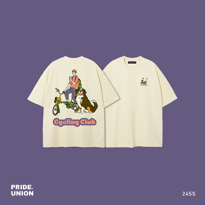 📚 PRIDE UNION原创设计超重磅美式印花伯恩山自行车宽松短袖男TEE