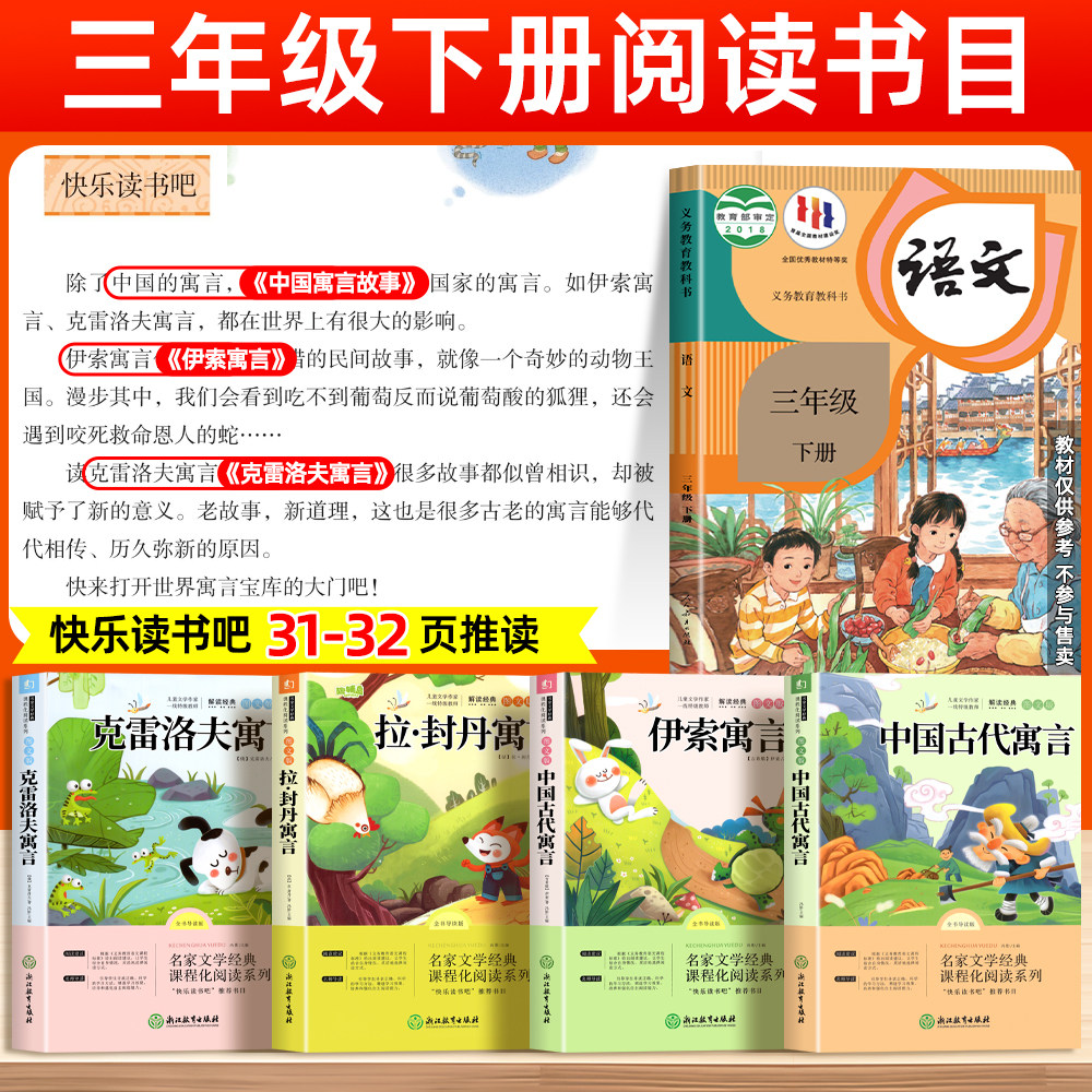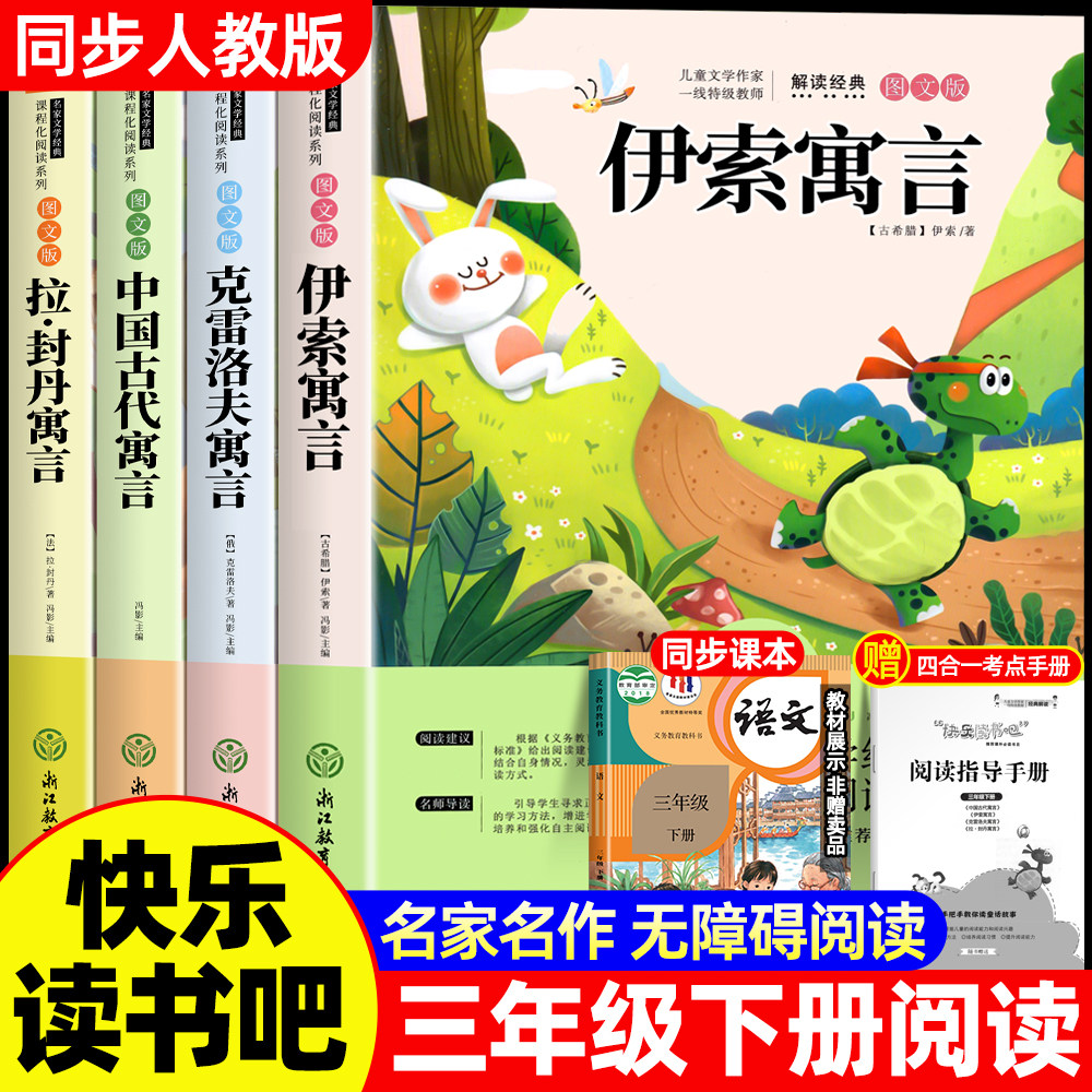 📚 伊索寓言三年级下册必读正版的课外书快乐读书吧3下学期阅读书籍人教版老师推荐中国古代寓言故事拉封丹寓言克雷洛夫寓言