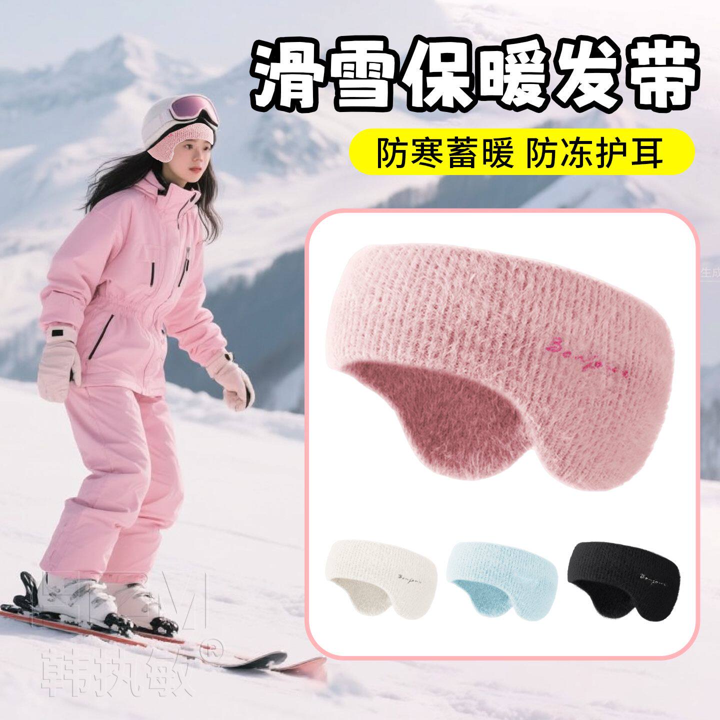 📚 女士滑雪专用帽子毛线加绒加厚防风防寒发带冬季晨跑护脑门遮额头